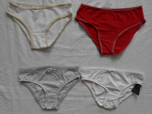 nošené spodní kalhotky, vel. cca 104, šířka v klidu 2x19cm, uvedena vel. 5-6let, gumička měkká, pruží, vydrží tedy cca do vel. 110/116