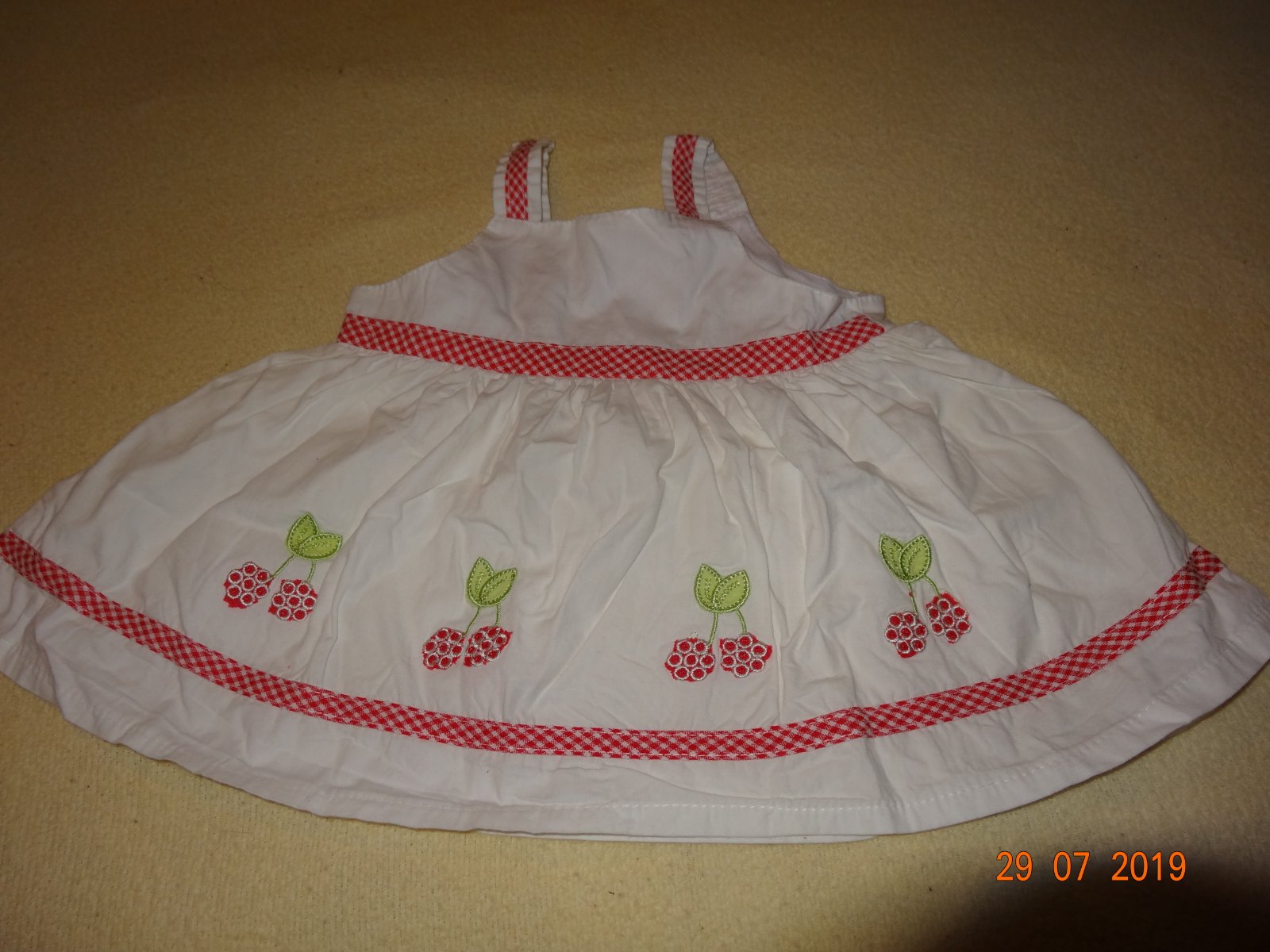 Prodám dívčí letní lehké plátěné šatičky v perfektním stavu, velikost 62 - 68, složení 100 % bavlna. Cena šatiček je: 85 Kč + poštovné. Krabice č. 11.