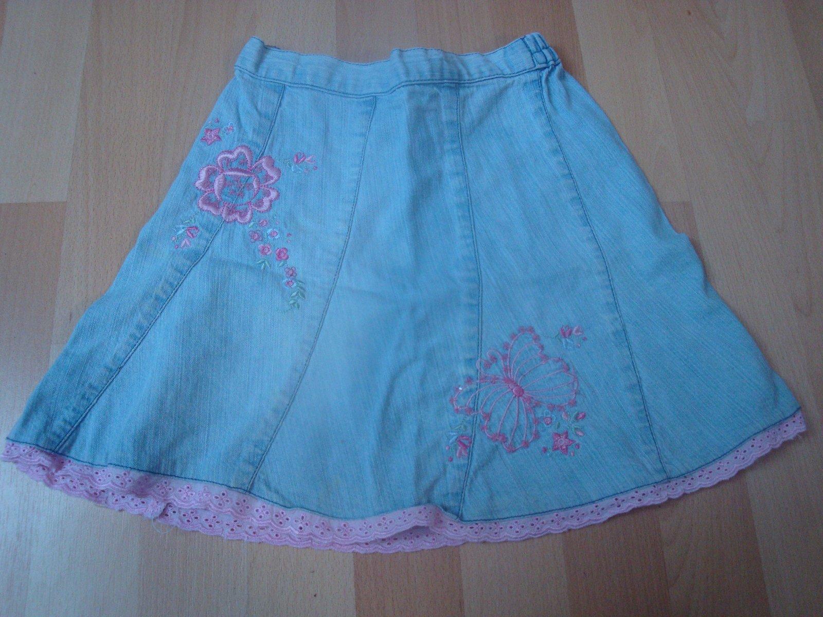 Džínová sukně s květy a motýlky - modrá, vel. 92