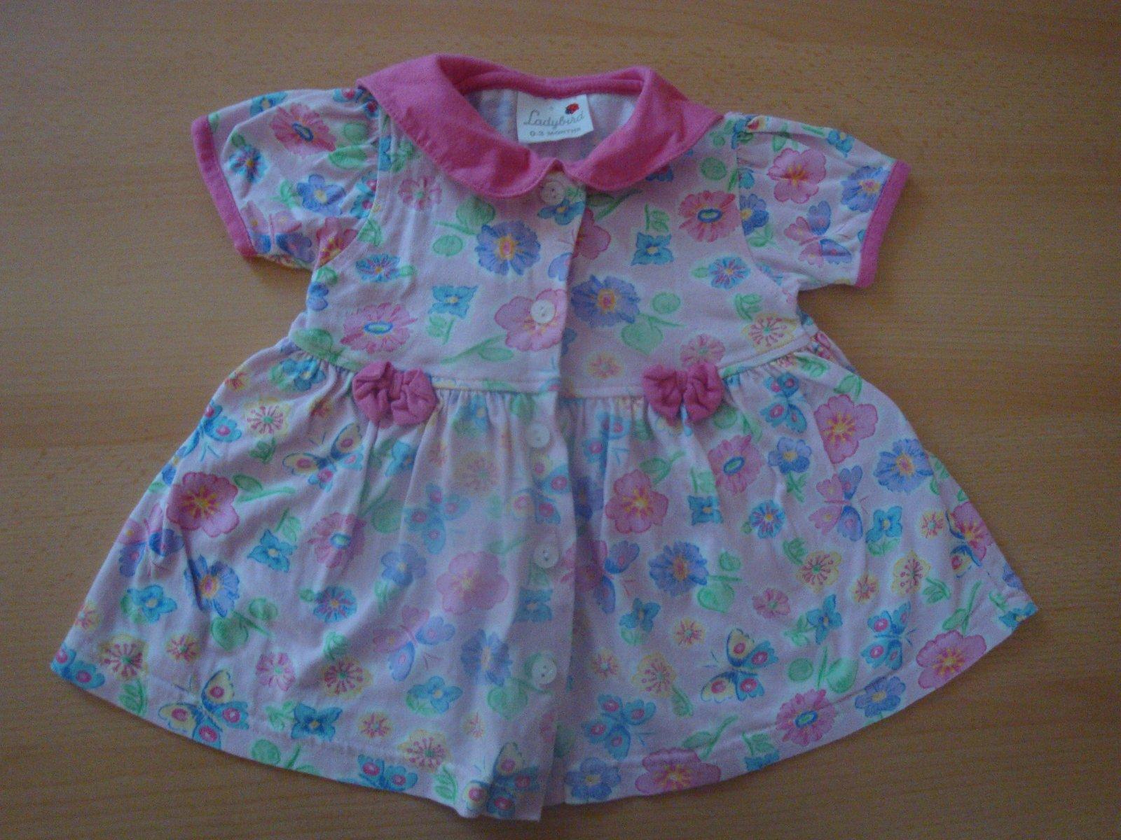 Nádherné růžové šatičky pro holčičky ve věku 0-6 měs. Šatičky mají u krku límeček, jsou zdobey mašličkami, motiv: květin a motýlů, zn. Ladybird. Jsou celopropínací na knoflíčky. Top stav. Výše poštového činí 55,-Kč za doporučený balík. V případě jakýchkoliv dotazů mě prosím kontaktujte.