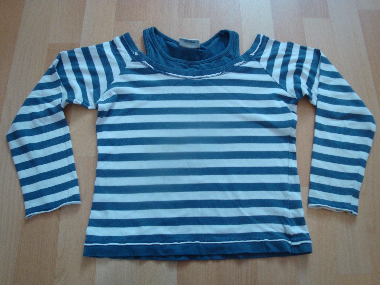 Nádherné námořnické tričko pro holčičky ve věku cca 5-7 let od zn. Next. Barva: tmavě modro-bílá. Triko má v sobě všité jakoby tílko, což vypadá velmi efektivně - průstřihy na ramínkách. Velmi dobrý stav. Výše poštovného činí 32,-Kč obyčejně nebo 49,-Kč doporučeně. Pro více informací mě prosím kontaktujte.