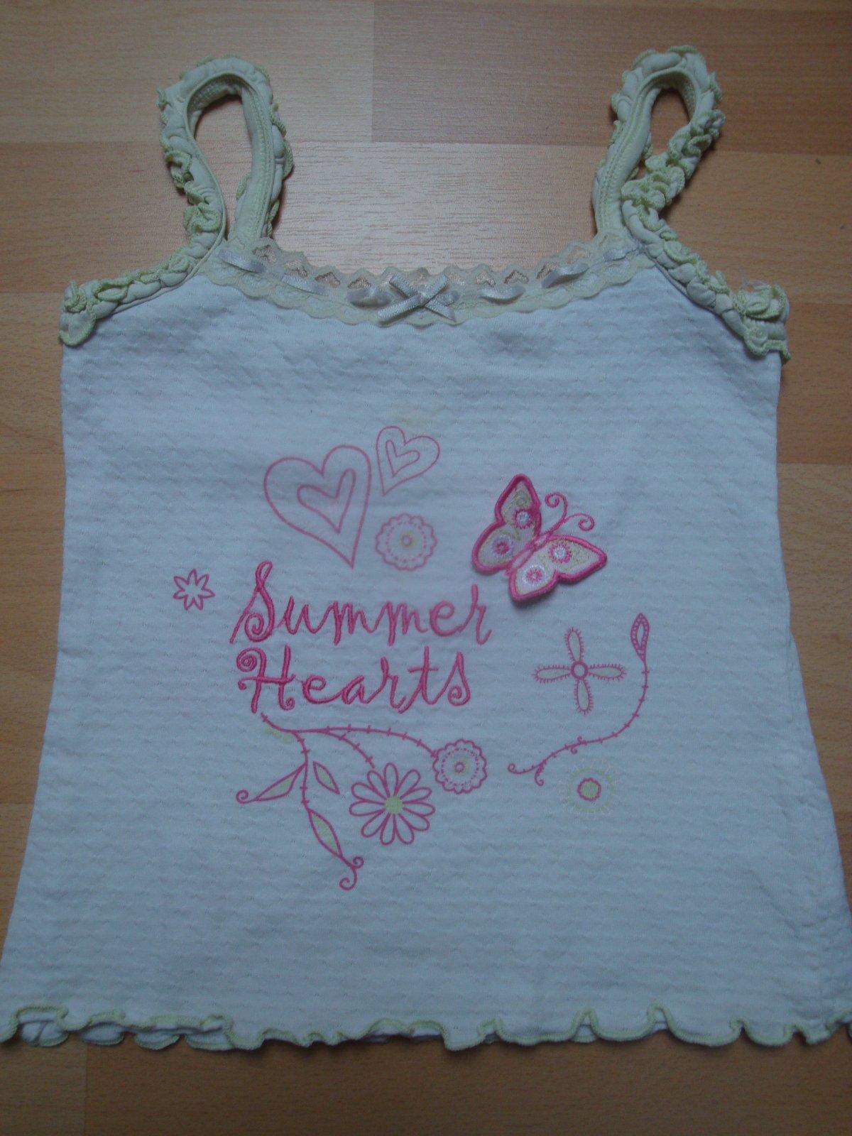 Krásné něžné tílko pro holčičky ve věku 4-5 let. Tílko je romanticky řešeno - s krajkou a mašličkou. Motiv květin, srdíček a motýlka od zn. Essentials sleep. Top stav. Výše poštovného činí 45,-Kč za doporučený balík. V případě jakýchkoliv dotazů mě prosím kontaktujte.