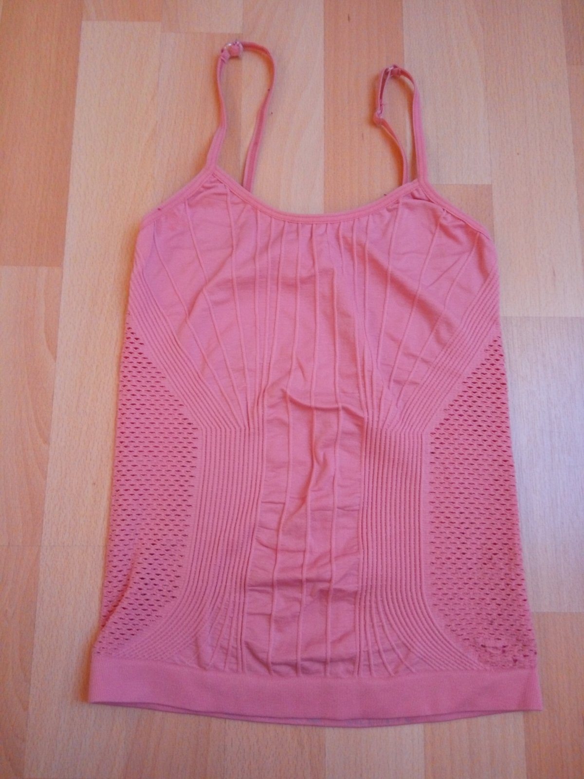 Krásné sportovní tílko v losové barvě s posuvnými ramínky. Materiál: 90% nylon, 10% elastan. Uvedená velikost je M, ale spíše odpovídá vel. 140/146. Velmi dobrý stav.