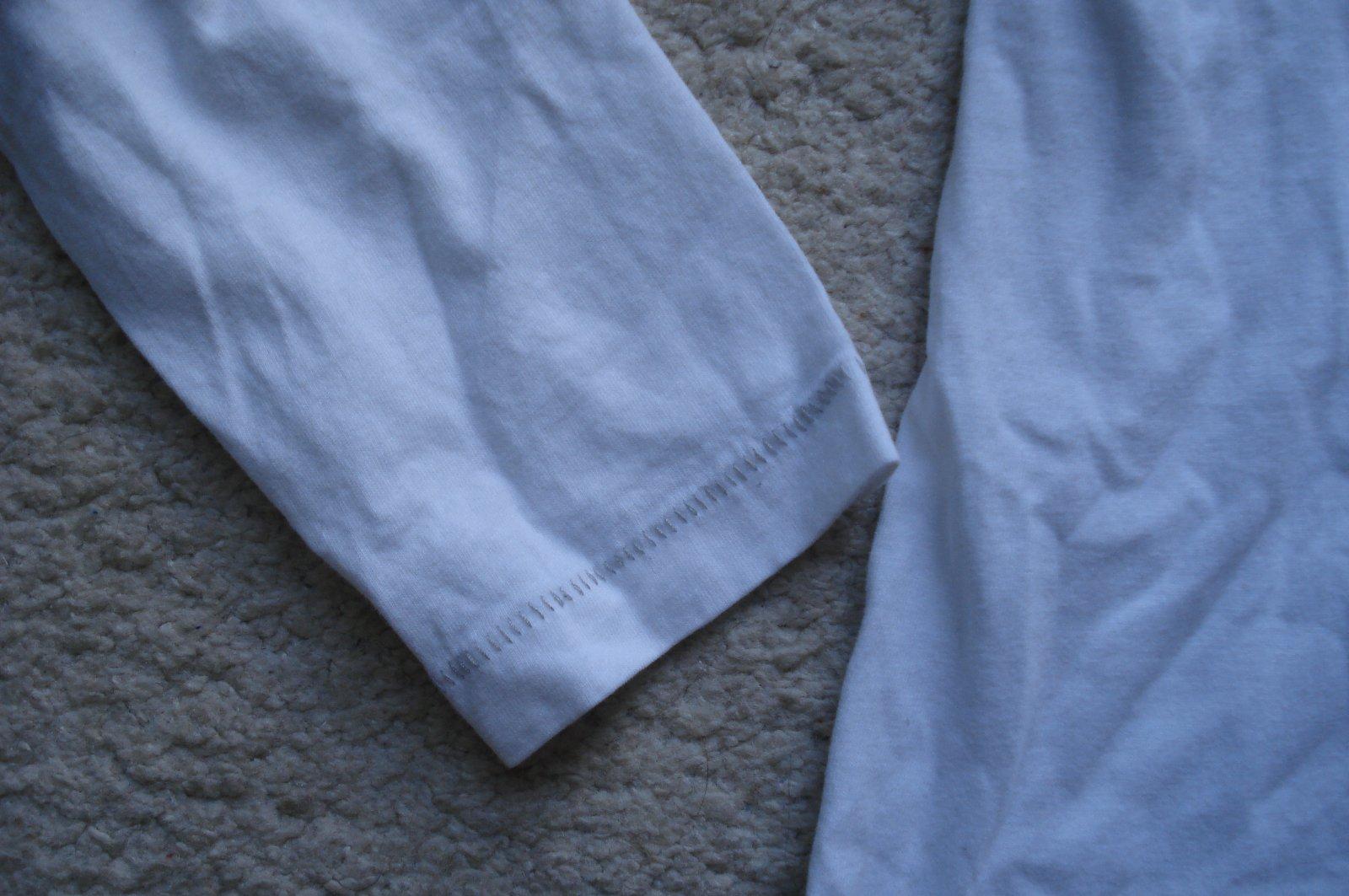 Hezké bavlněné triko bez vad jen vevnitř u krku na šedém proužku je malinká dirka po odstraněné cedulce a jemný prací chloupek...bez fleků atd.Celková délka trika je 58,5 cm,délka rukávu od krku je 67,5 cm.