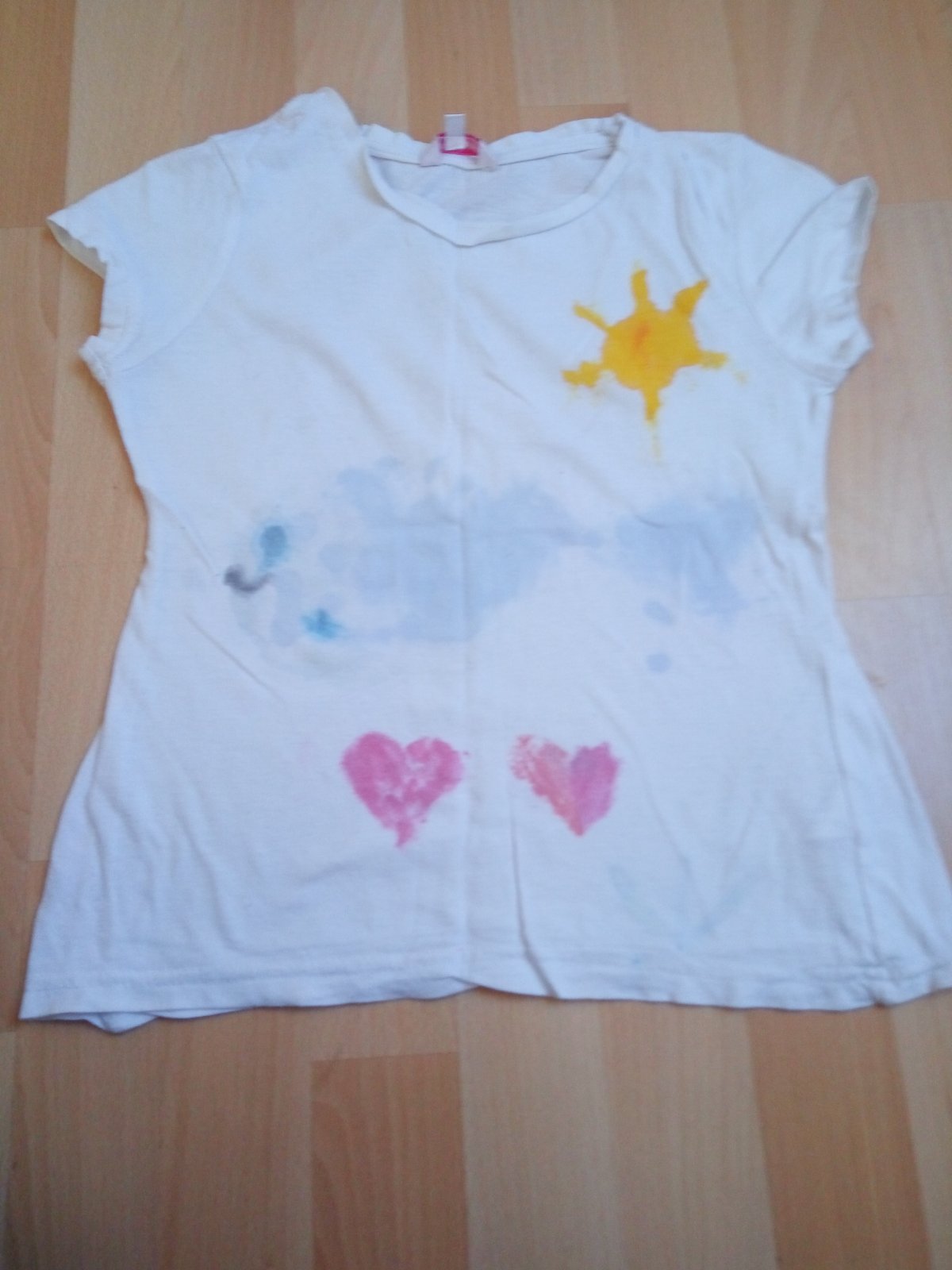 Stále pěkné klasické bavlněné tričko, vhodné např. na malování či jinou výtvarnou činnost. Pro holčičky kolem 8 let.