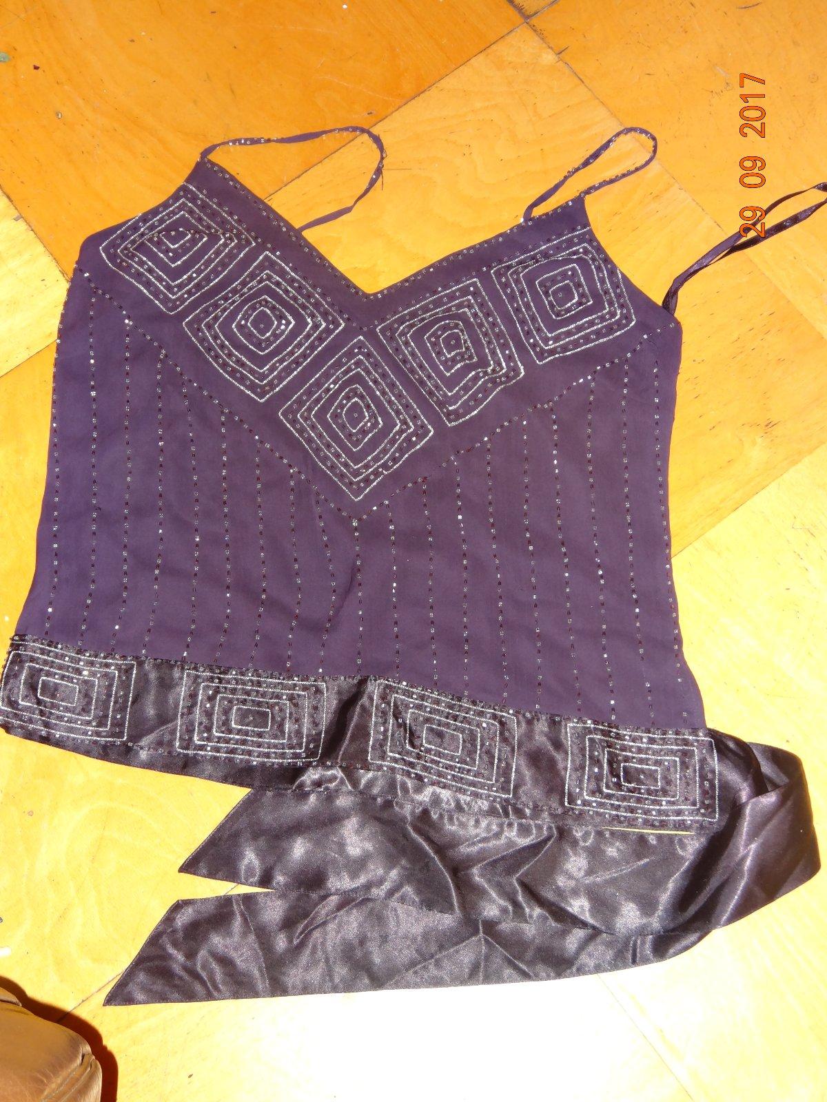 Prodám fantasticky vypadající tílko na ples, do společnosti, na párty, složení 100 % polyester, velikost 156 - 164, značka Amaranto, na ramínkách jsou 2 řady korálků, sem tam nějaký chybí, ale nějak to nejde vidět. Cena 40 kč + poštovné. krabice č. 4.