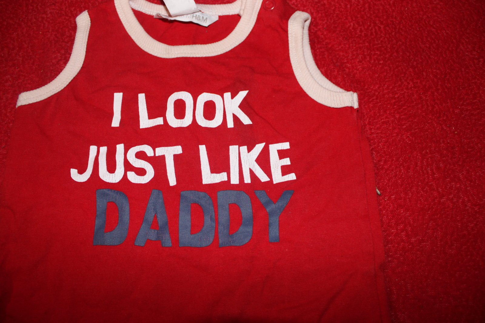 Prodám tílko v moc pěkném stavu, lehce popraskaný nápis, jinak ok, jedno rameno je na rozepínání na cvoček, viz foto, značka: H&M, velikost: 62 - 68, složení: 100 % bavlna. Cena tílka je: 35 Kč + poštovné. Krabice č. 27.