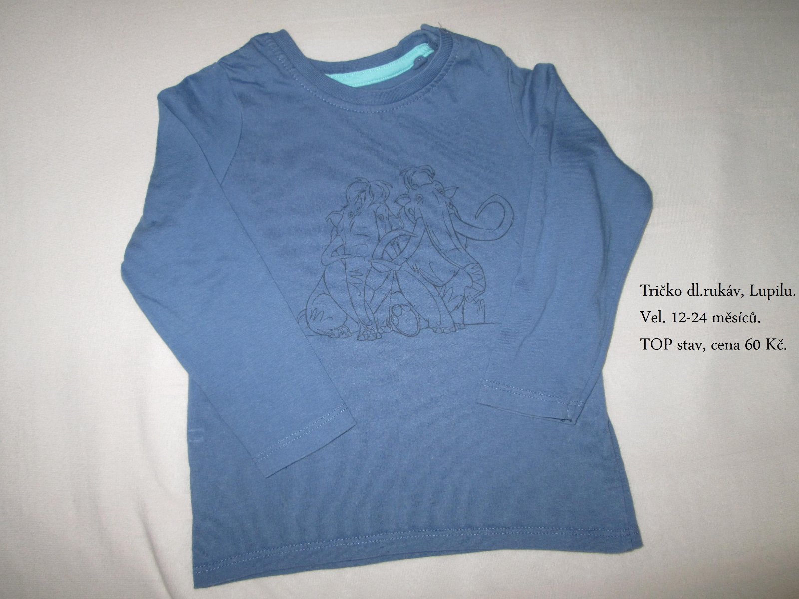 Prodám v krásném stavu tričko s dlouhým rukávem, vel. 12-24 měs.