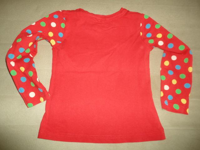 Pozdní nákup, jako nové, sytě červené s bezchybným potiskem vpředu, bavlněné triko, u krku mašlička, d. 41, š. 30,5cm, rukáv od průramku 29,5cm, od krku 44,5cm
