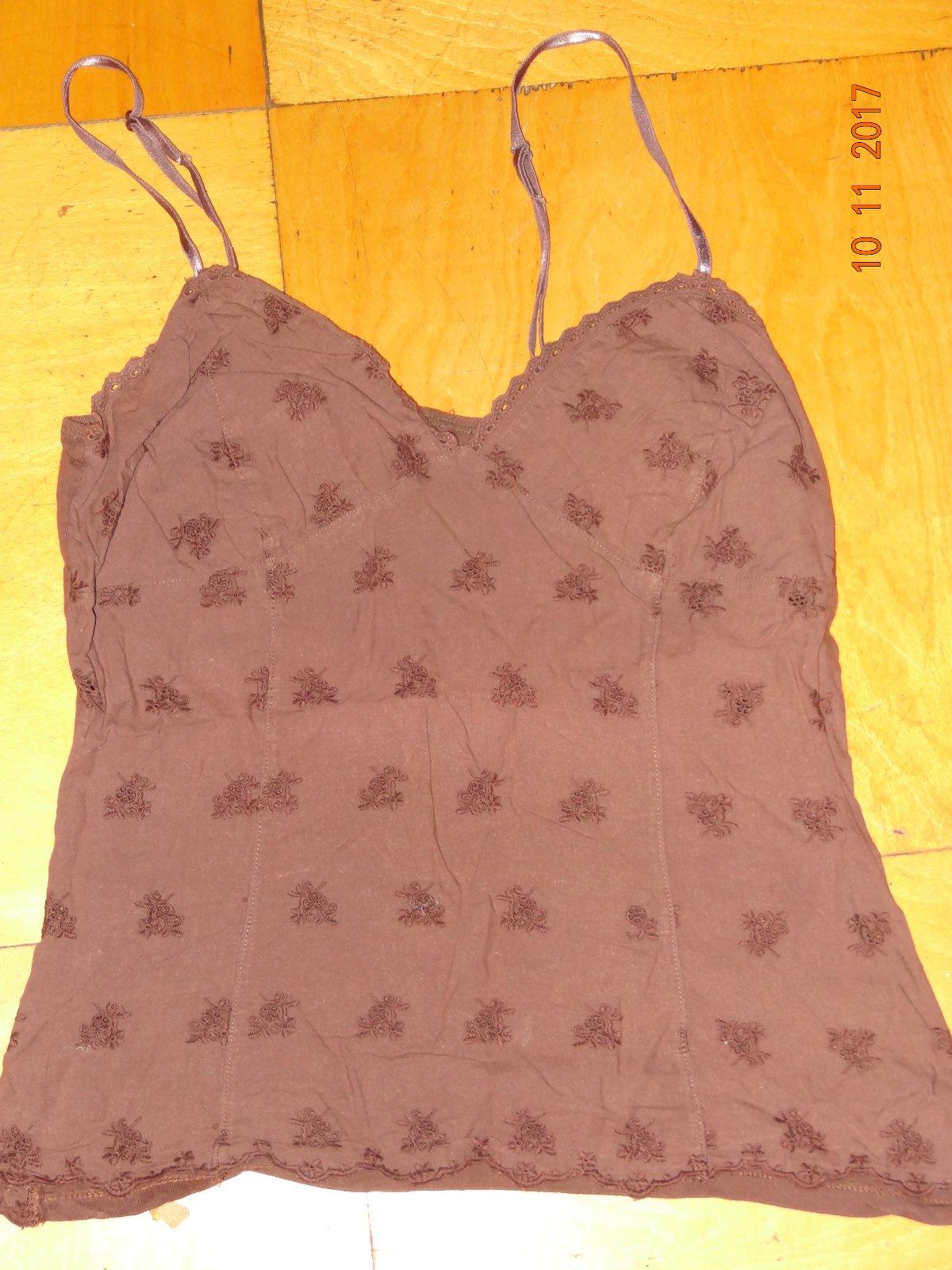 Prodám dámské tílko s ramínkama, které se dají povolit, velikost M, složení zadní díl 100 % bavlna a přední díl 100 % plátno, v perfektním stavu. Cena 45 kč + poštovné. Krabice č. 6.