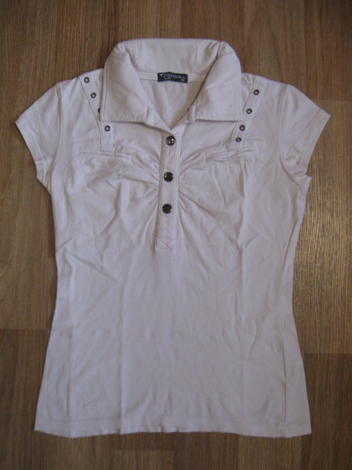 prodám triko s límečkem bílé barvy,vel.M 40/42,délka 59cm