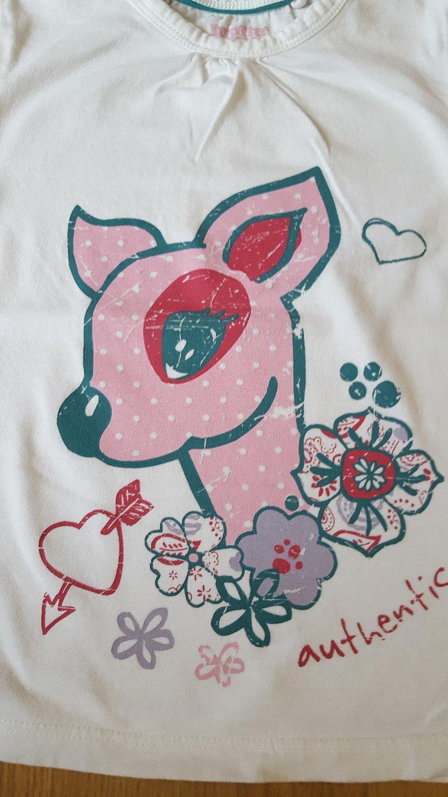 Nenošené triko, jen vyprané. Zapomněla jsem a pak už bylo malé. Délka 41,5cm, délka rukávu 39cm, od krku 46cm, šíře 31cm. Moc slušivé, doporučuji.