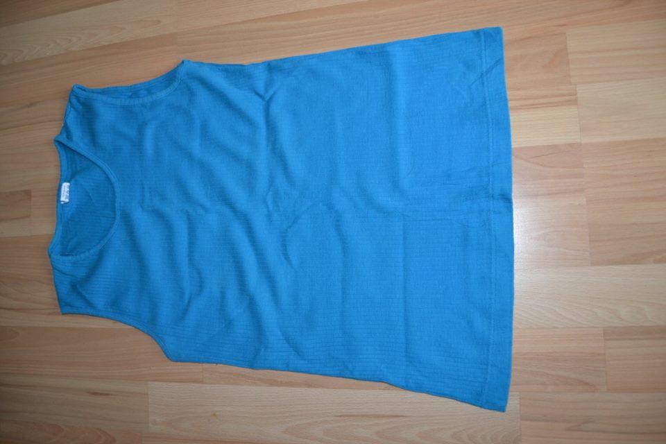Tílko je nové, nenošené, mnou pouze vyzkoušené a vyprané. Je tyrkysově modré, ve přední části nápis z kamínků, žádný nechybí. Cedulku s velikostí a materiálovým složením jsem iniciativně ustřihla, ...