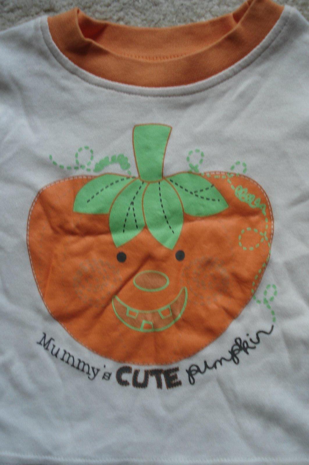 Moc hezké bavlněné tríčo s obrázkem dýničky.Velikost 3/6 měsíců.Celková délka od náramenice je 30 cm.Triko je bez vad moc hezké