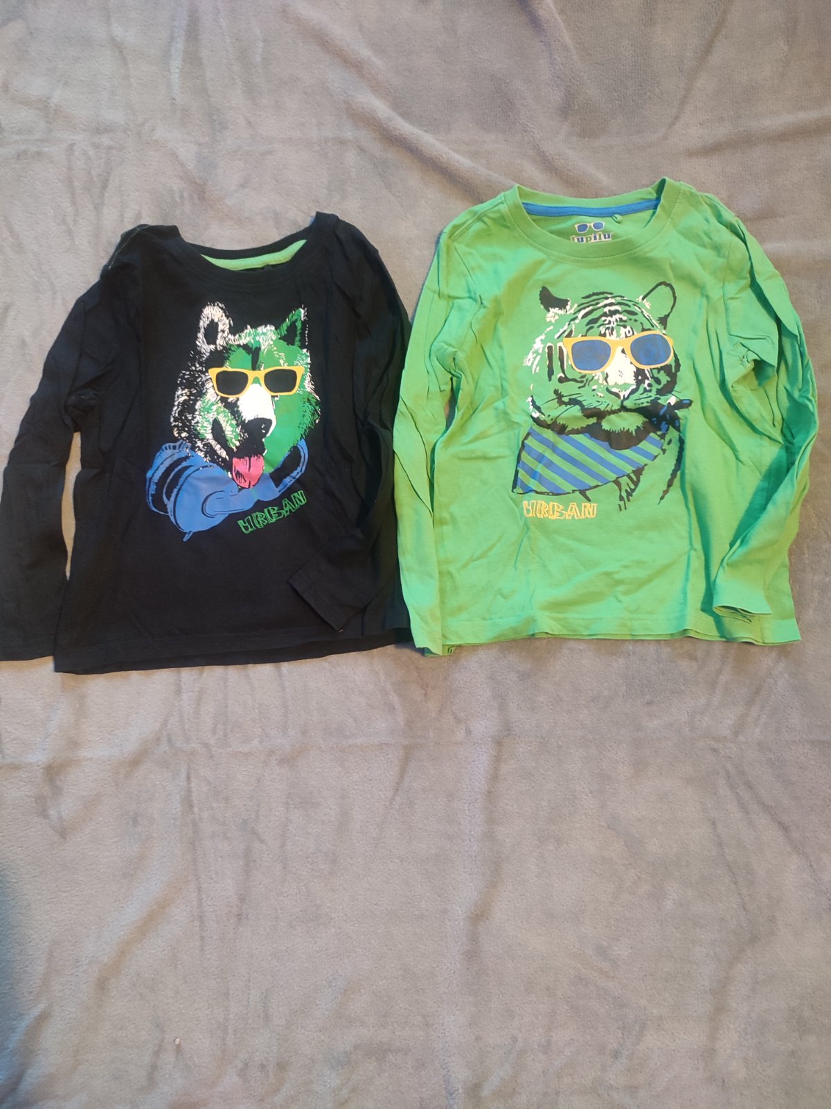 Pěkná nošená trička s dlouhým rukávem zn. LUPILU vel. 110/116, zelené zašito ve švu v podpaždí.