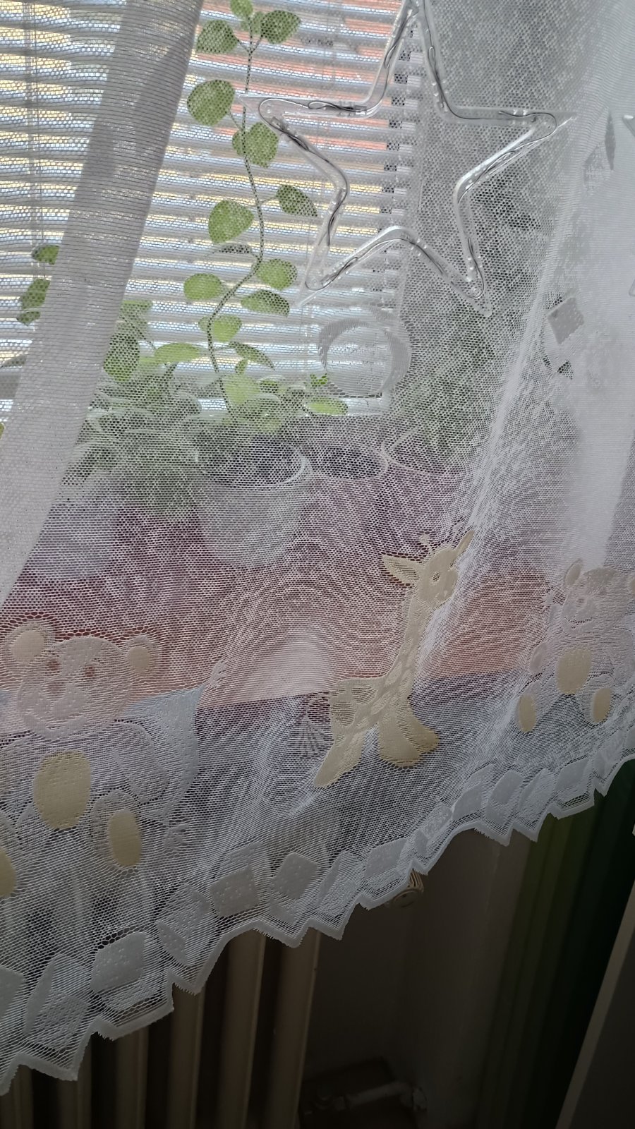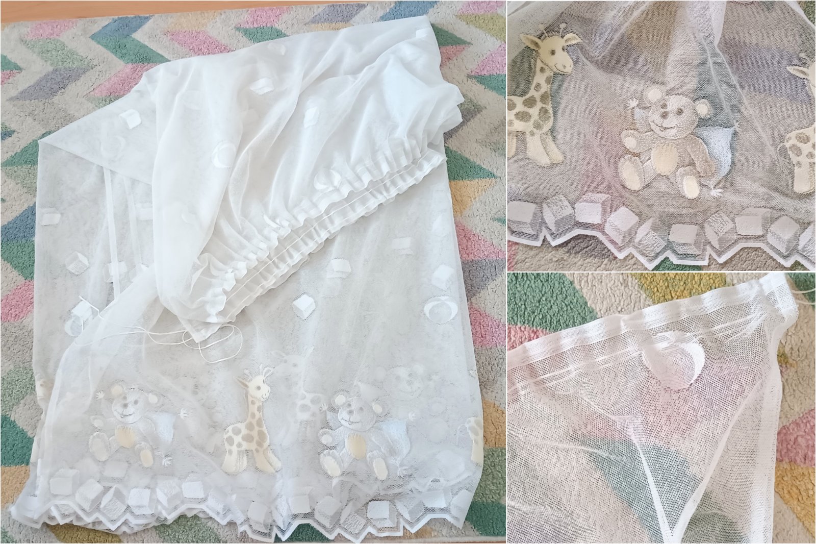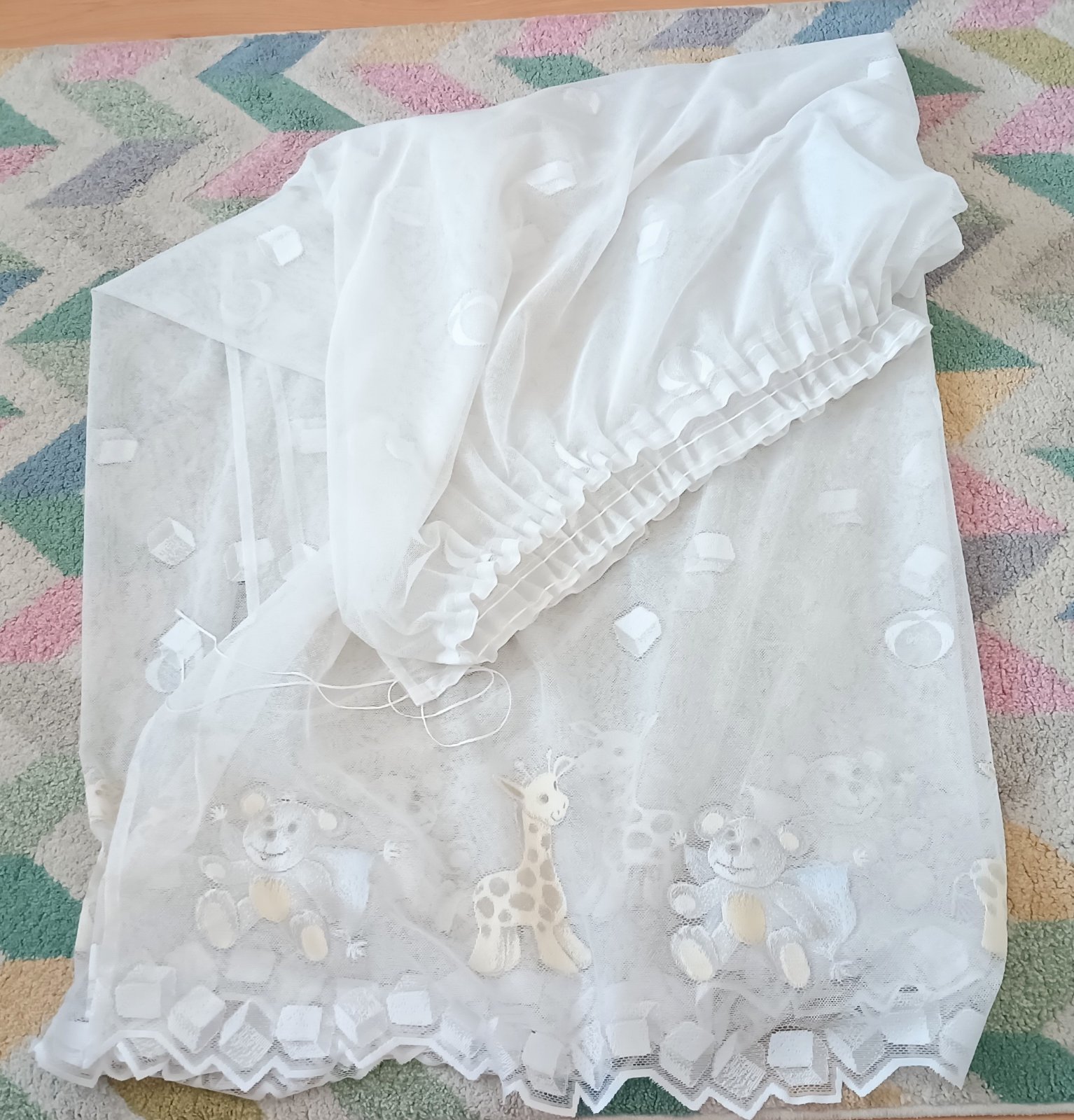 nahoře řasící páska,dole jsou zvířátka,šířka 340 cm a výška 160 cm,používaná v dětském pokoji,ale dcera už ji nechce
