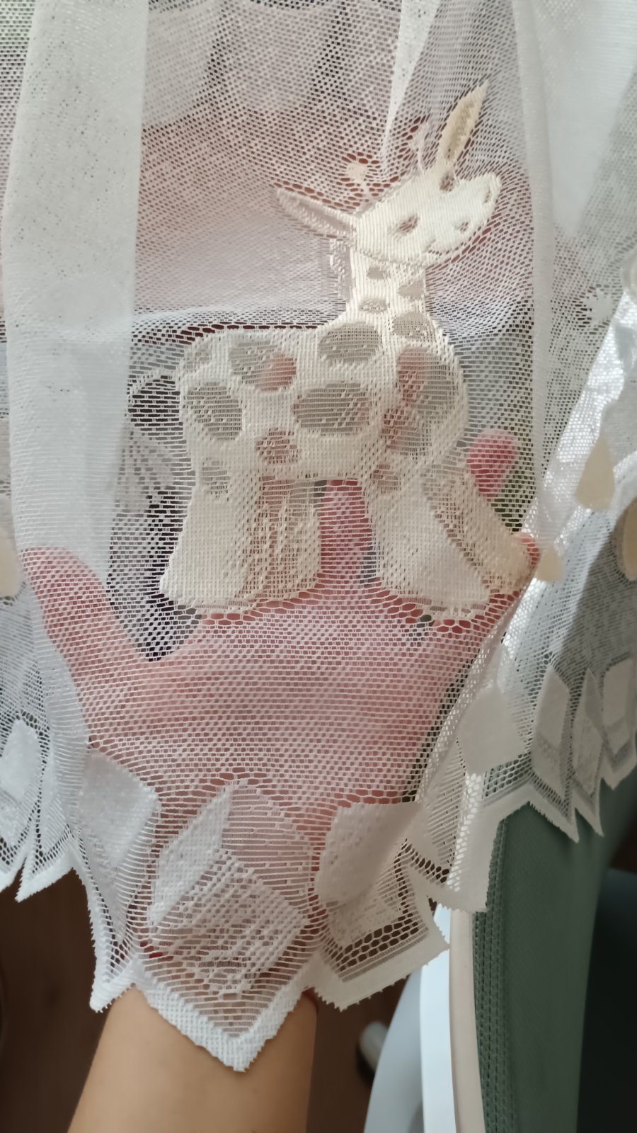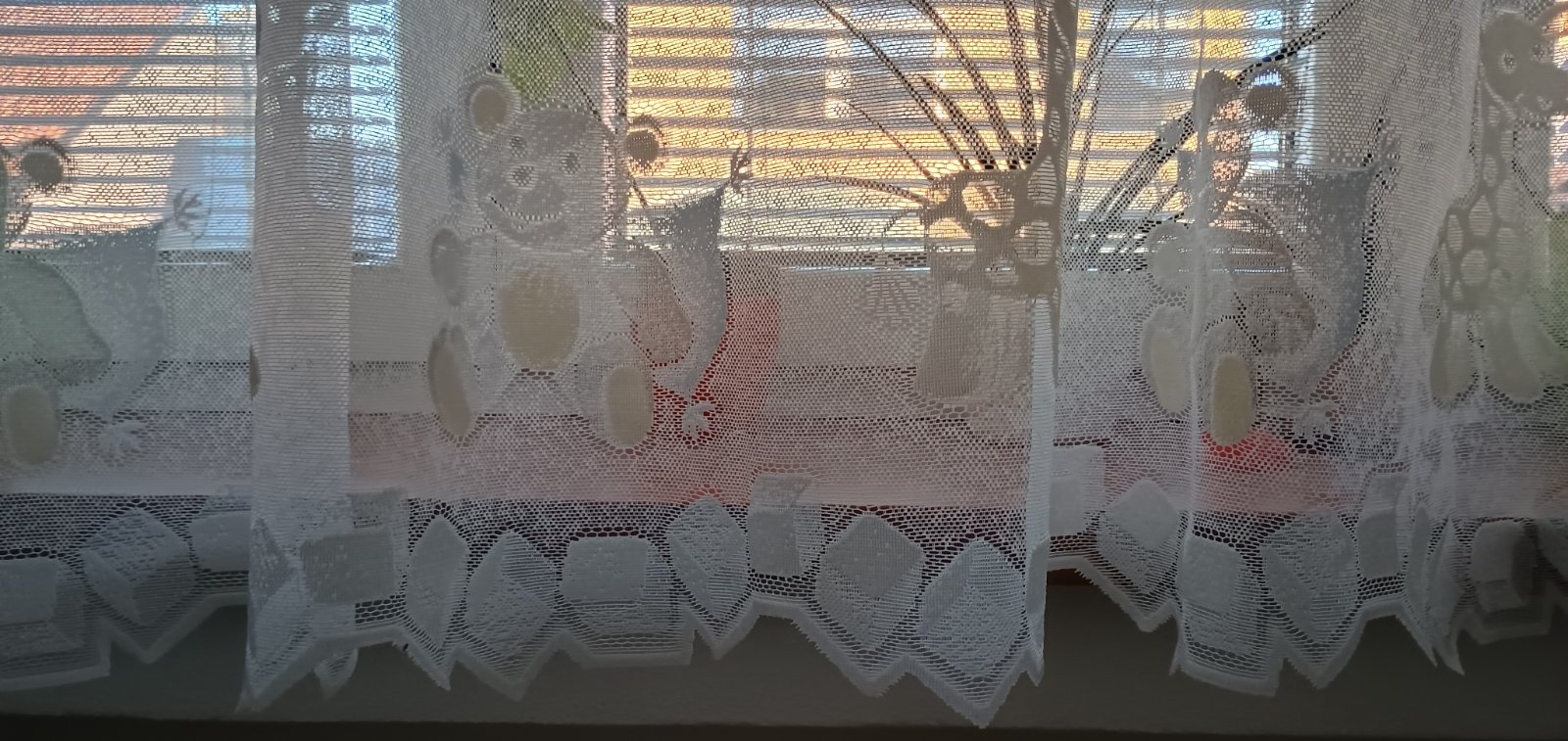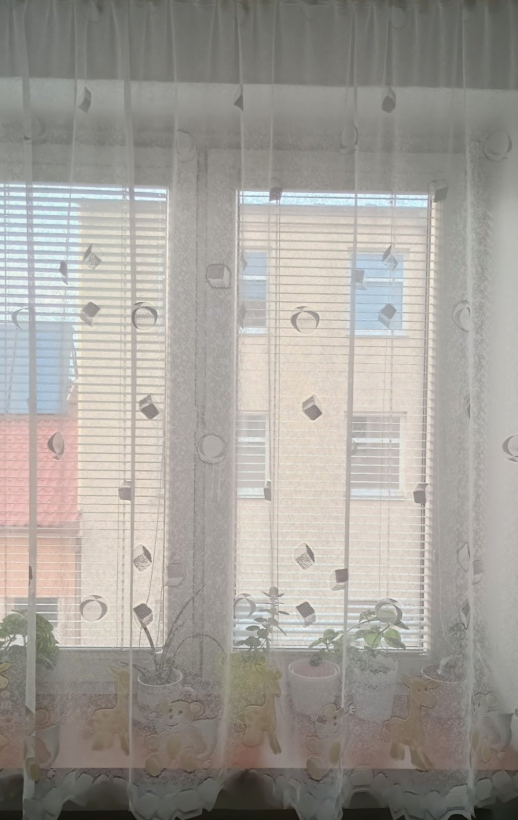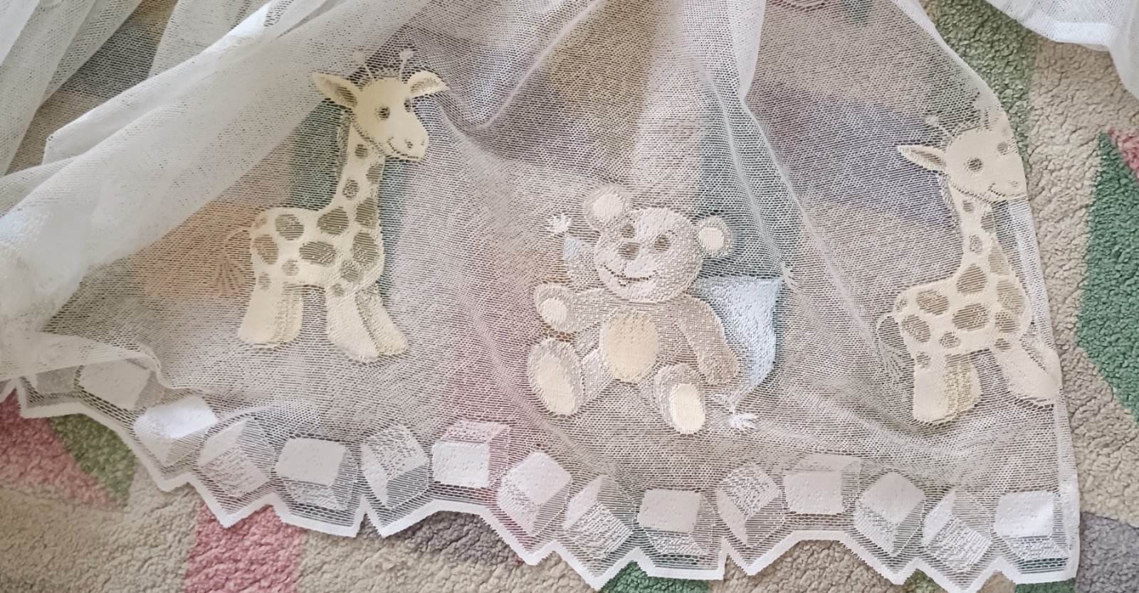 nahoře řasící páska,dole jsou zvířátka,šířka 340 cm a výška 160 cm,používaná v dětském pokoji,ale dcera už ji nechce