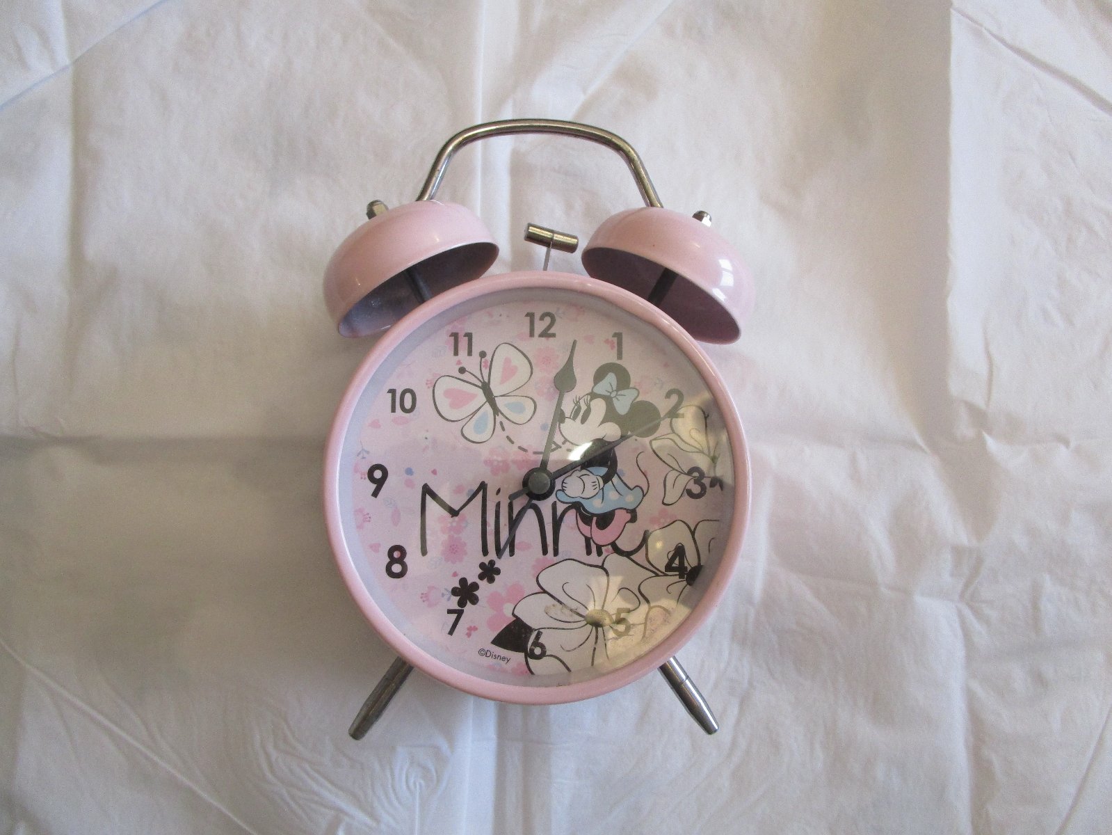 Pěkný růžový budík s Minie, rozm. cca 16x12 cm