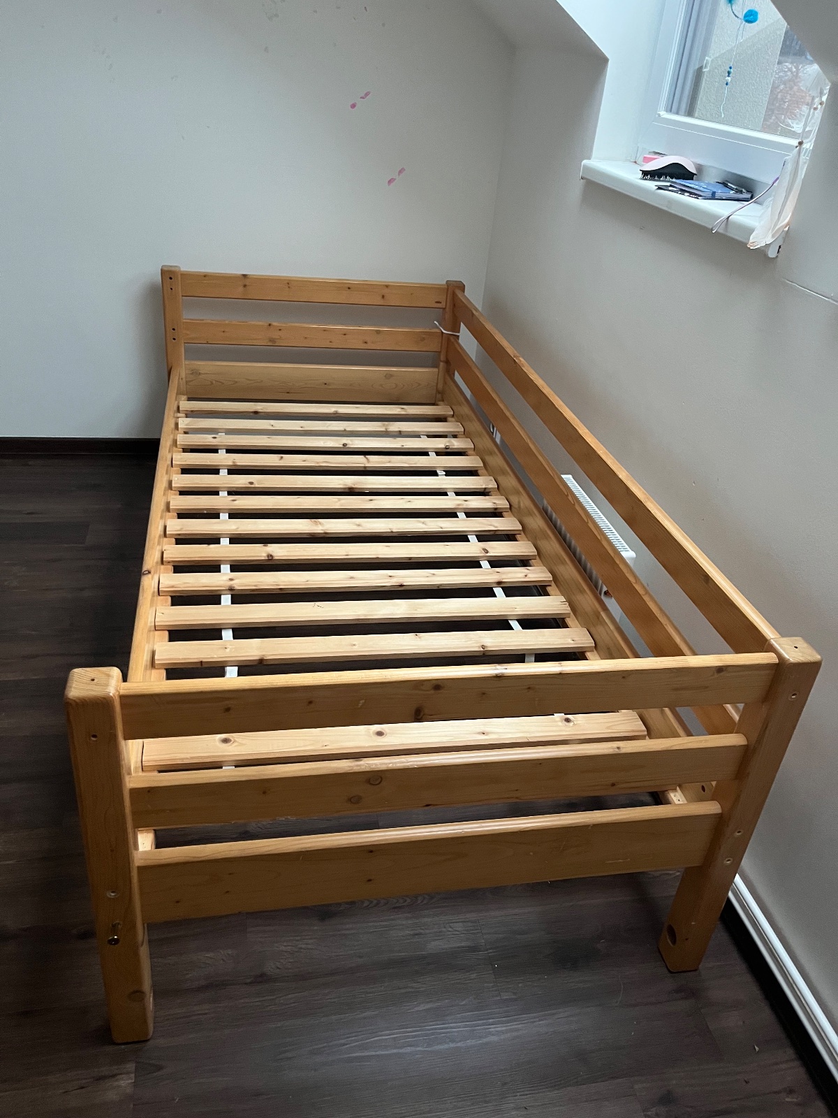 Drevena postel z masivu pro velikost matrace 90x200 cm.