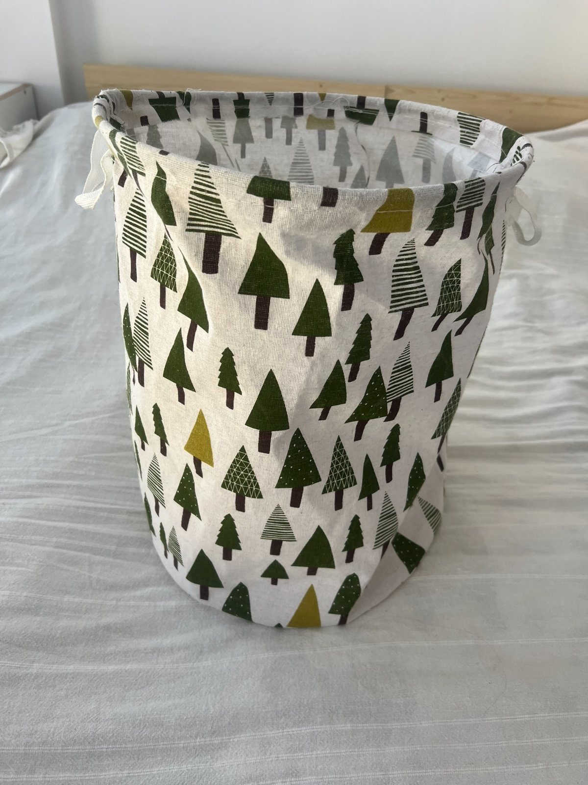 Výška 44 cm, průměr dna 34,5 cm. Obruč je na 2 místech prasklá. Stále poslouží na plyšáky apod.