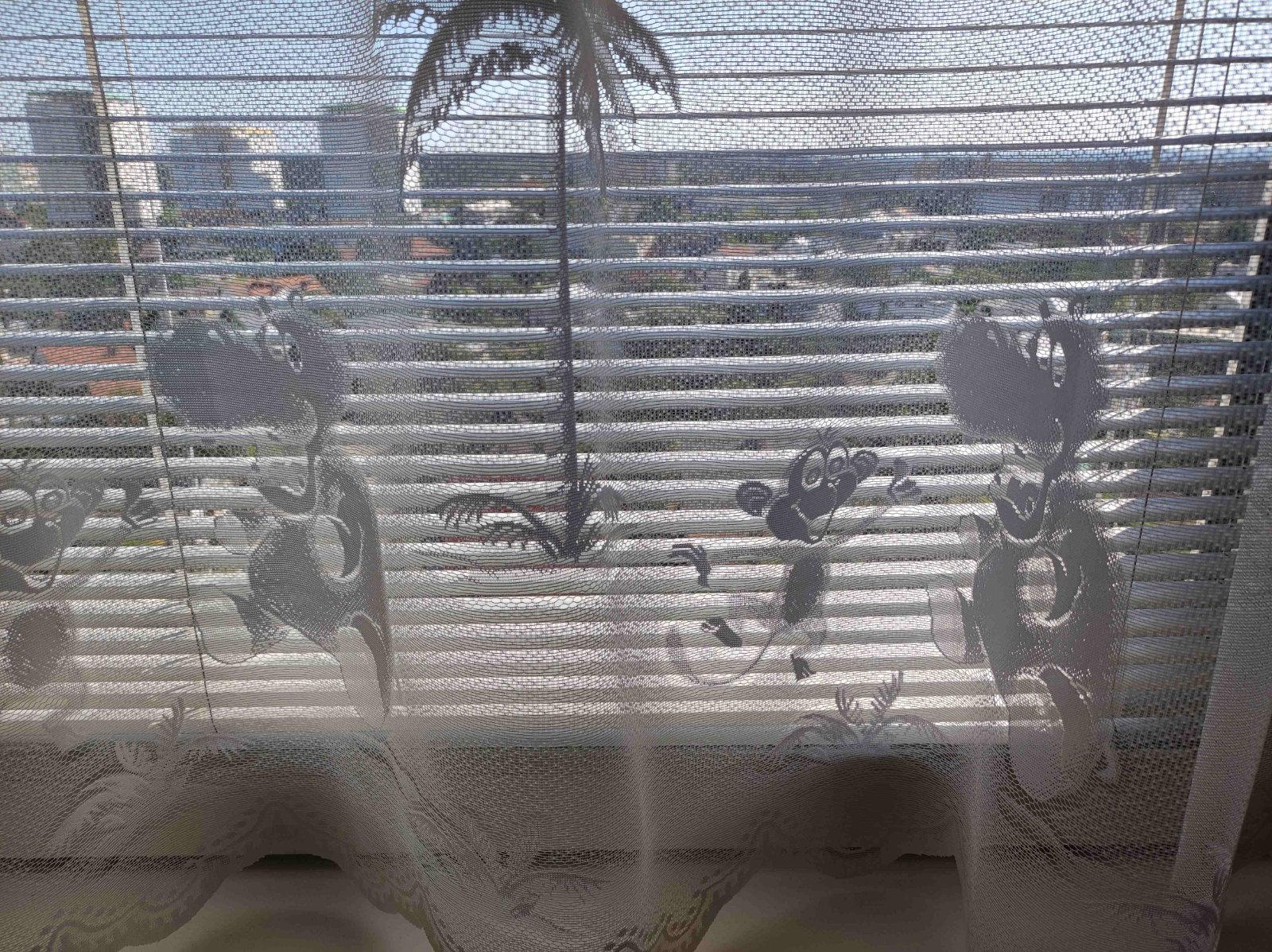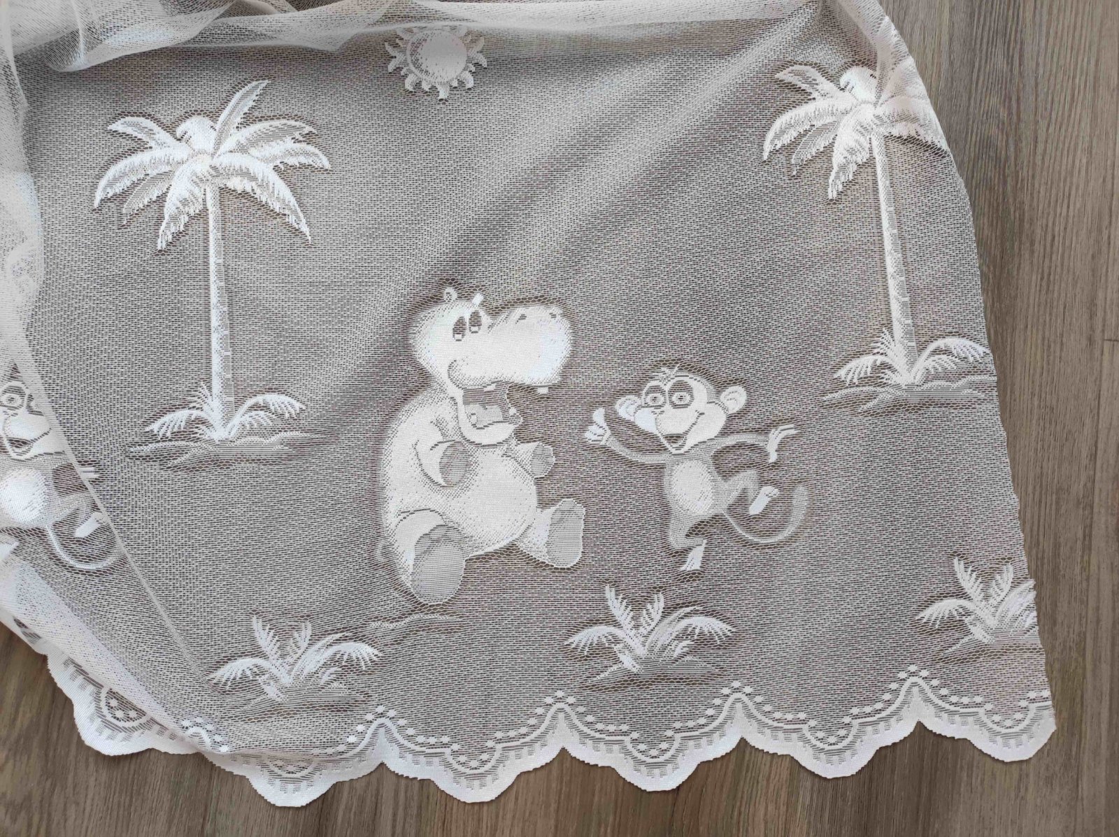 Záclona do dětského pokoje - hrošíci, opičky, palmy, sluníčka