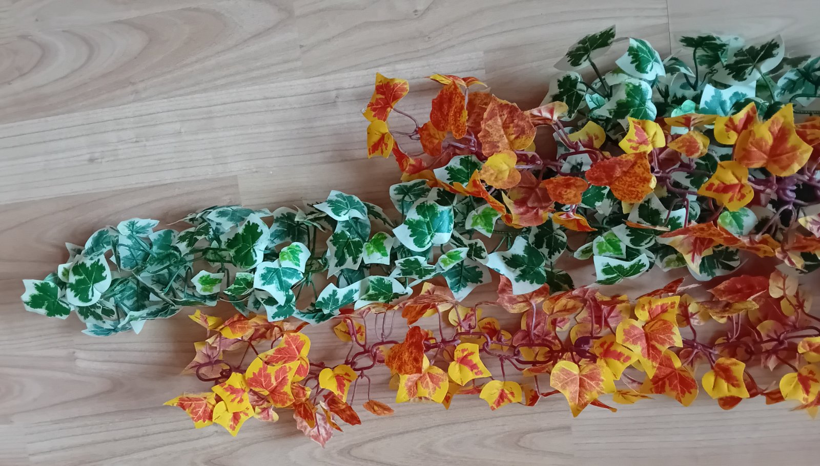 Dva dduhy umělých listů jako dekorace na stěnu.
