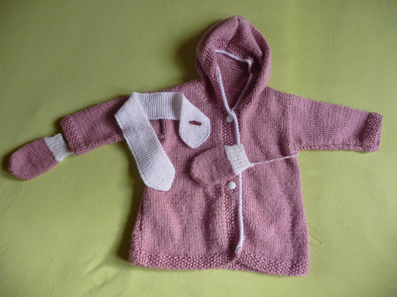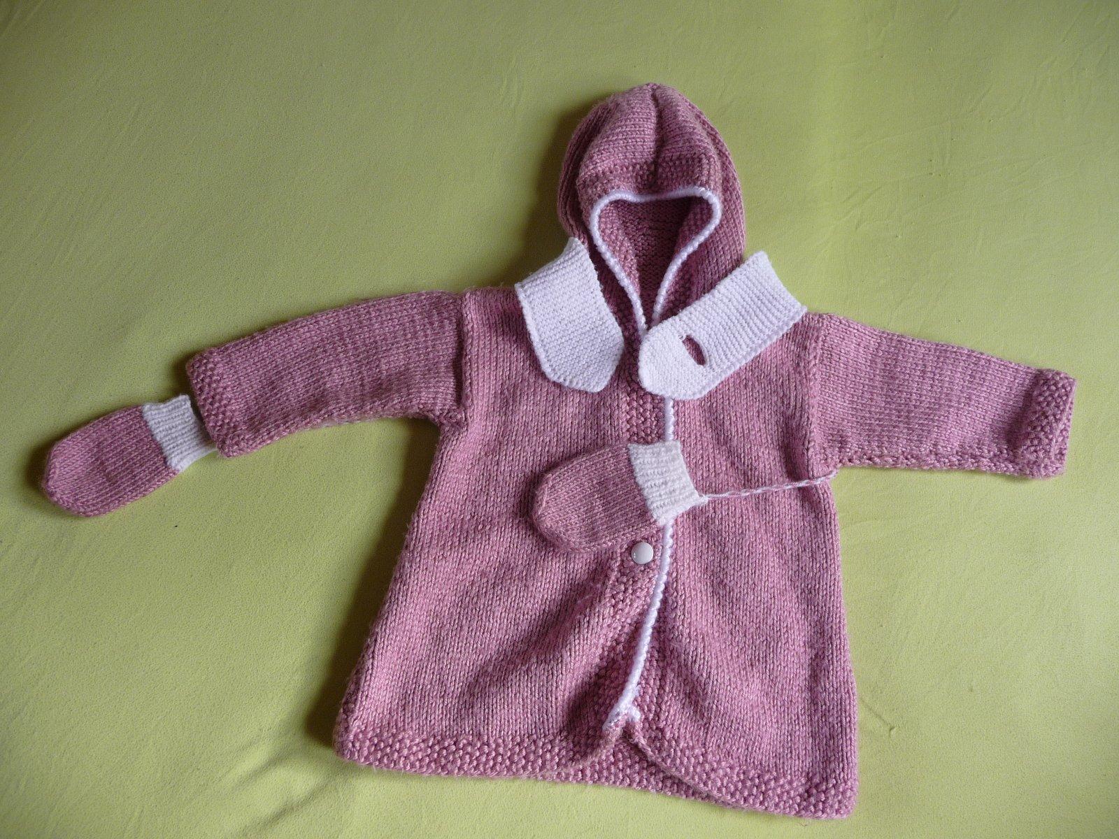 Doma pletené kabátky s krátkým šálkem, rukavičkama na šňůrku.