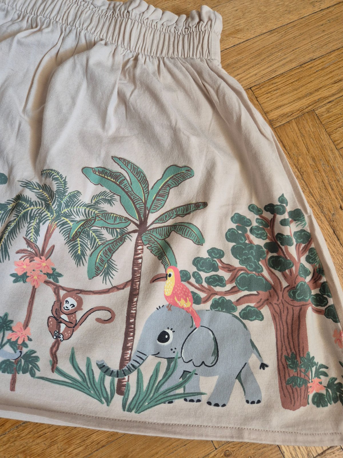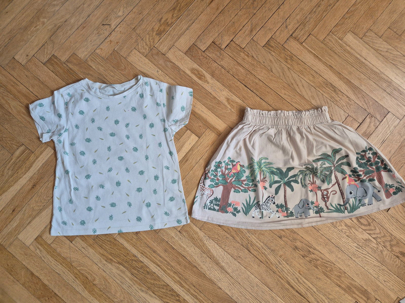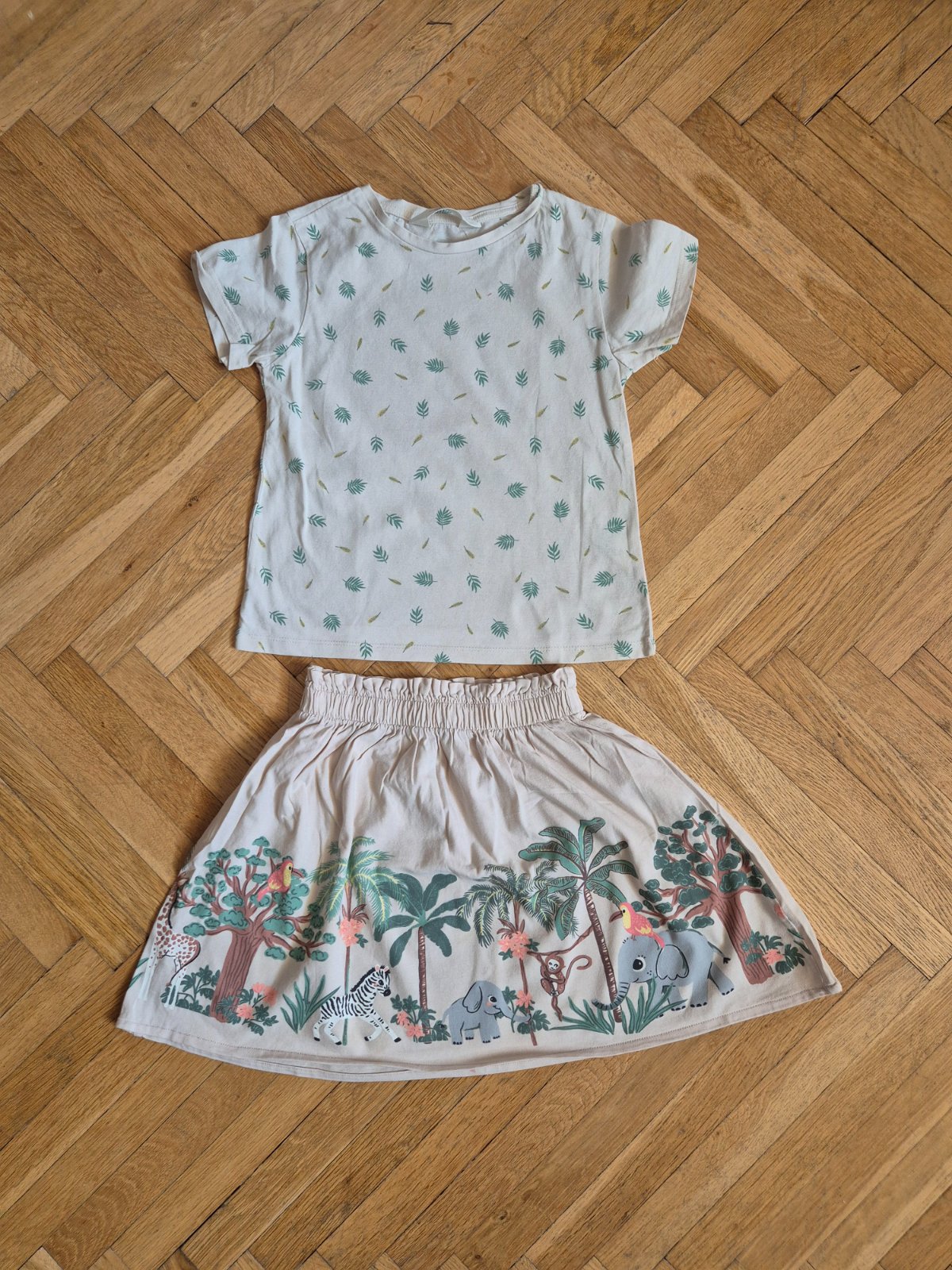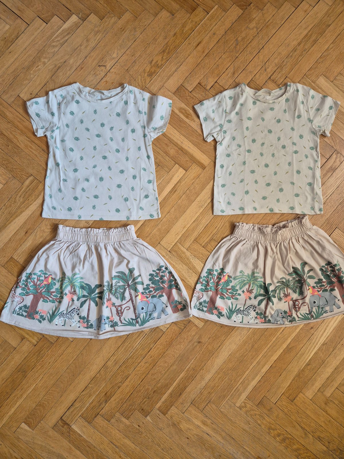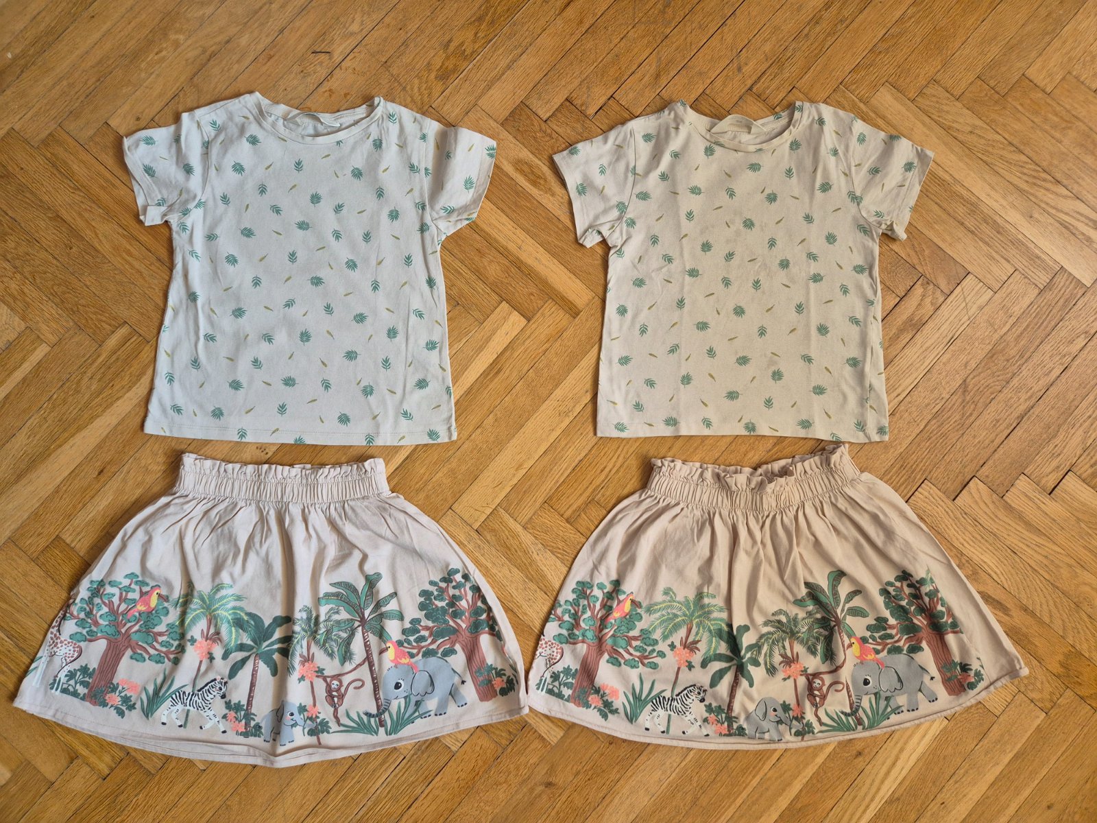 Letní komplet z bavlny, sukýnka má v pase širokou gumu, obrázek je jen na přední straně, trička maji potisk i vzadu