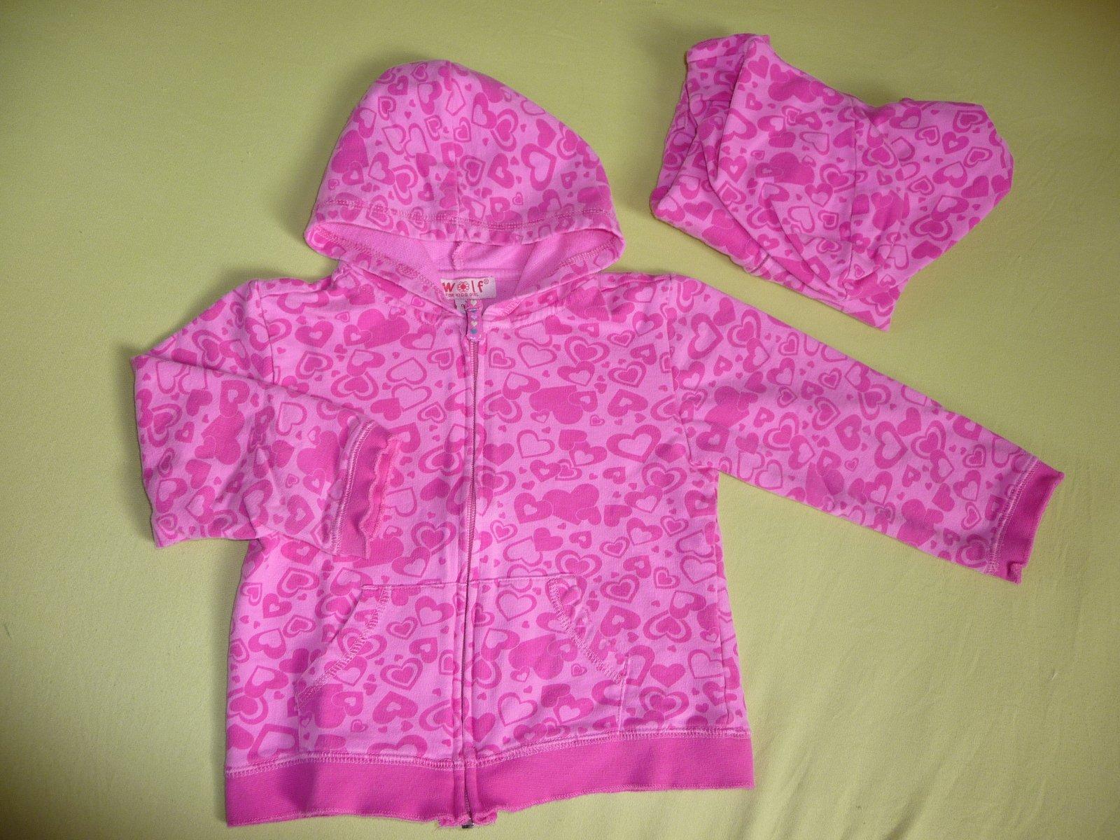 Pěkné srdíčkové mikinky. Barva již není praním tolik výrazná, mírný chloupek od praní.