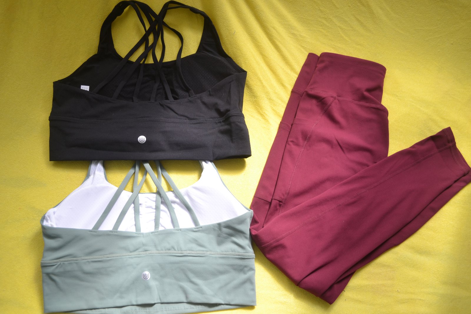 výborné nové kvalitní sportovní legíny v.L ,praktické, kapsa na mobil,+ dva sportovní topy L,XL, dobře sedí,věci jsou lehce pružné, sedí všechny ideálně na velikost 38-44, cena je celkem za všechny tři kusy
