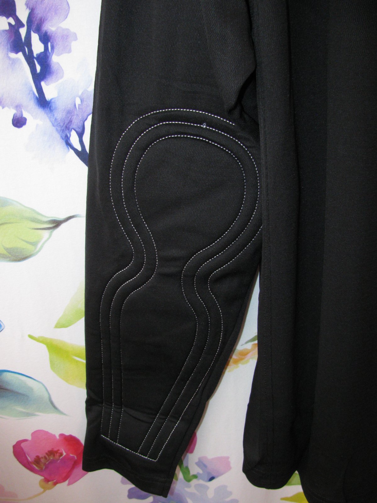 Černý elastický sportovní dres, s vypolstrovanými lokty, logo, 100% polyester.