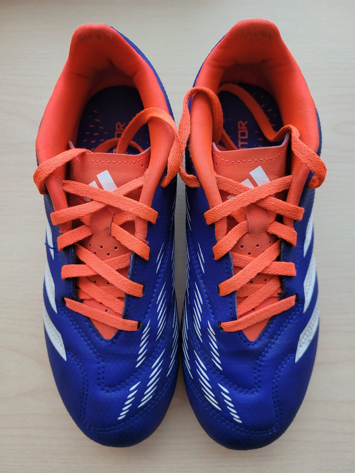 Kopačky značky Adidas v barevné kombinaci tmavší modré-svítivě oranžové-bílé. Dodám v originální krabici.