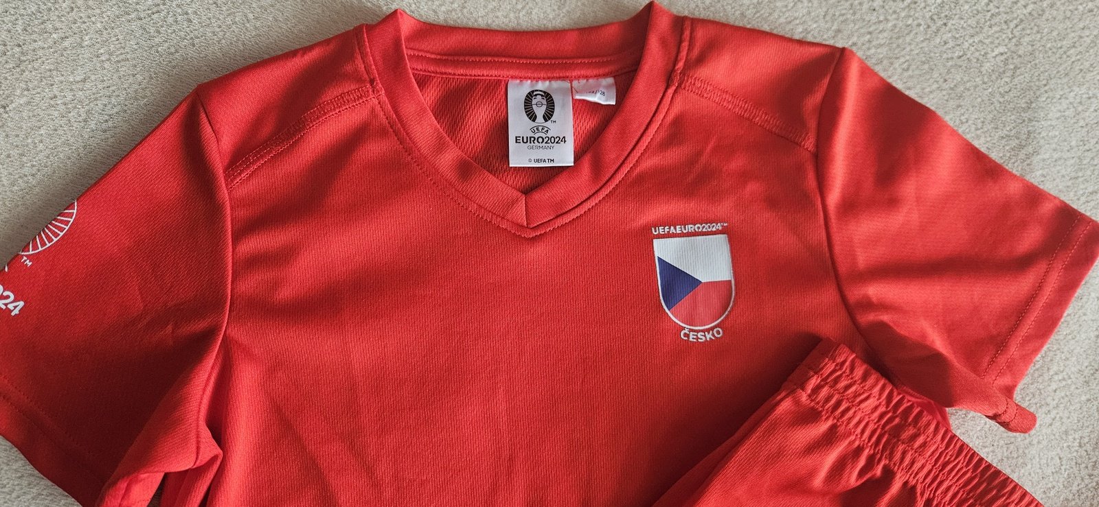 Prodám ve velice pěkném stavu párkrát vzatý červený fotbalový dres - tričko s krátkým rukávem a kraťasy.