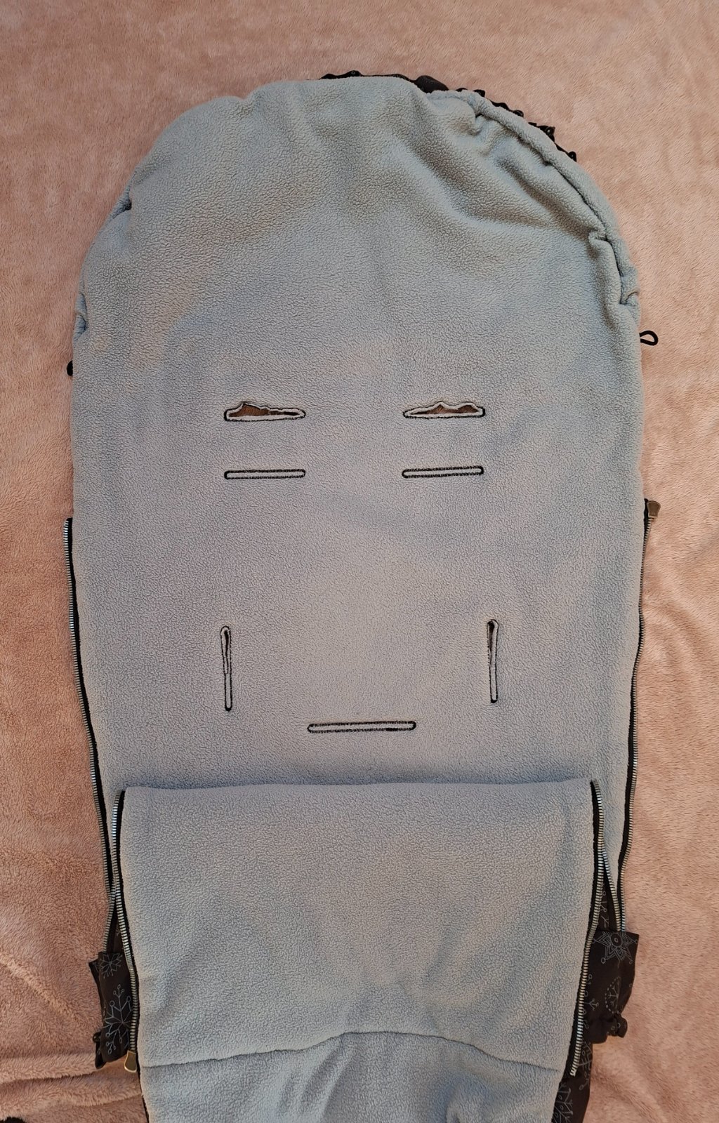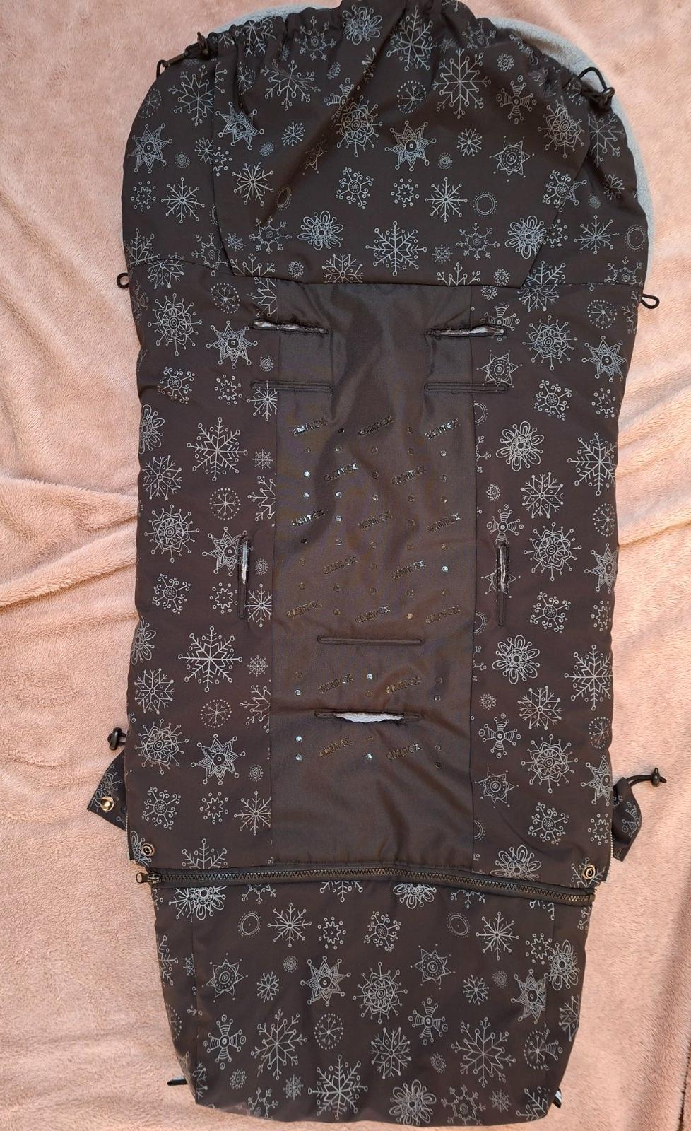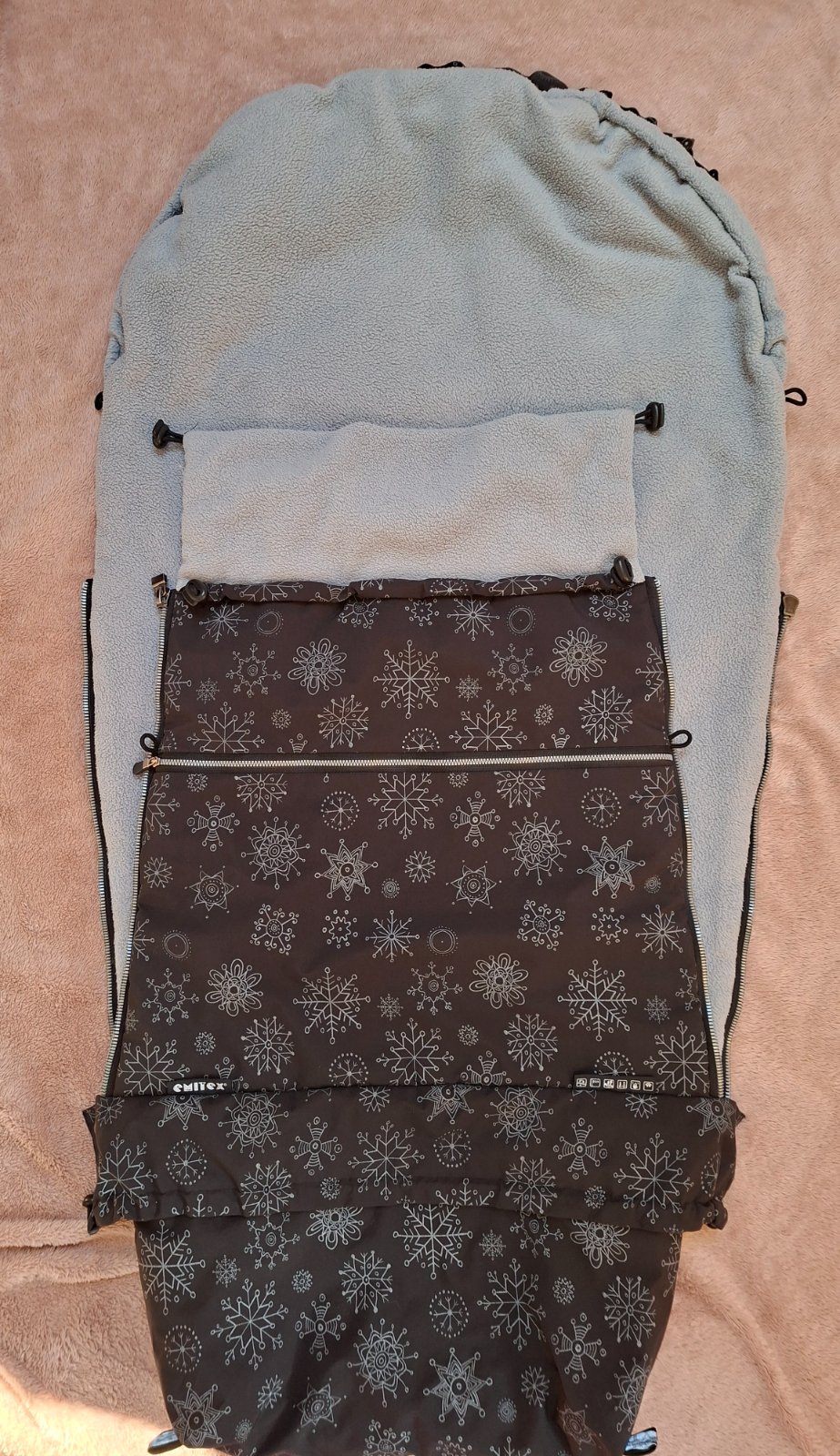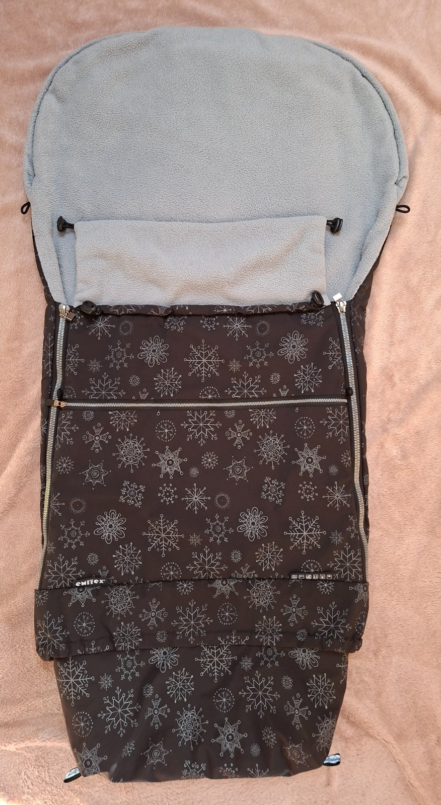 Hezký stav, bez vad. Zipy v pořádku jezdí.Lze zmenšit do hlubokého kočárku. Černý s vločkami, vnitřek šedý.