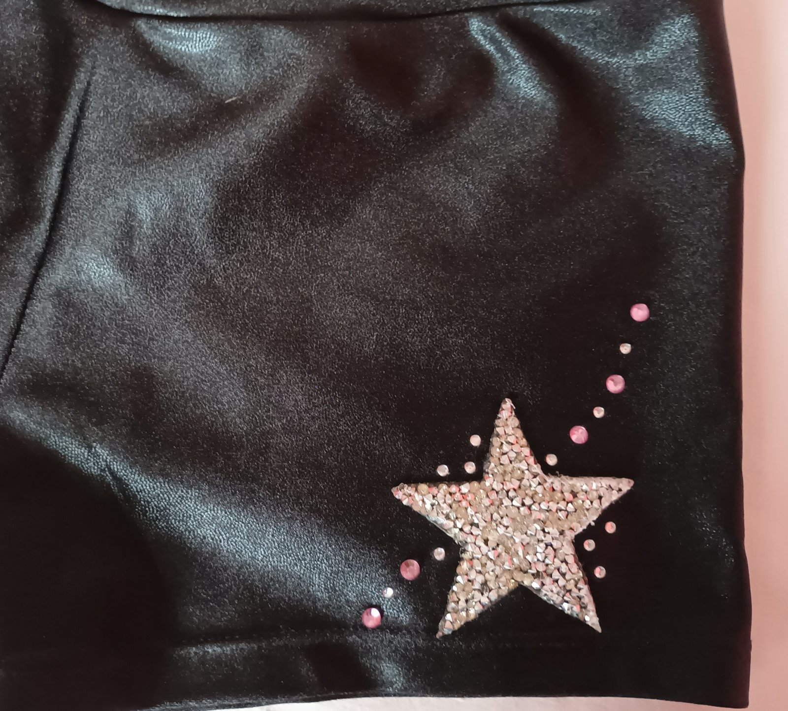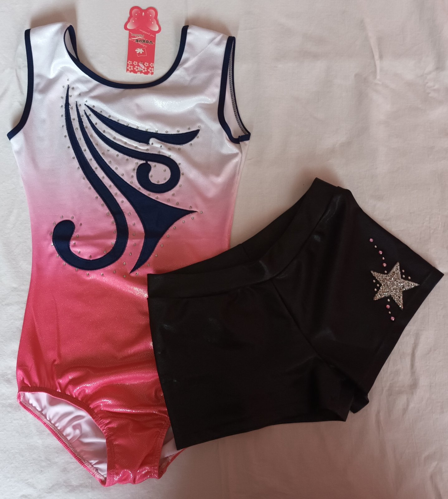 Moc krásný růžový/třpytivý gymnastický dres, třpytivé aplikace/kamínky na body i kalhotkách viz.foto. Vel. 14let cca 164/170.