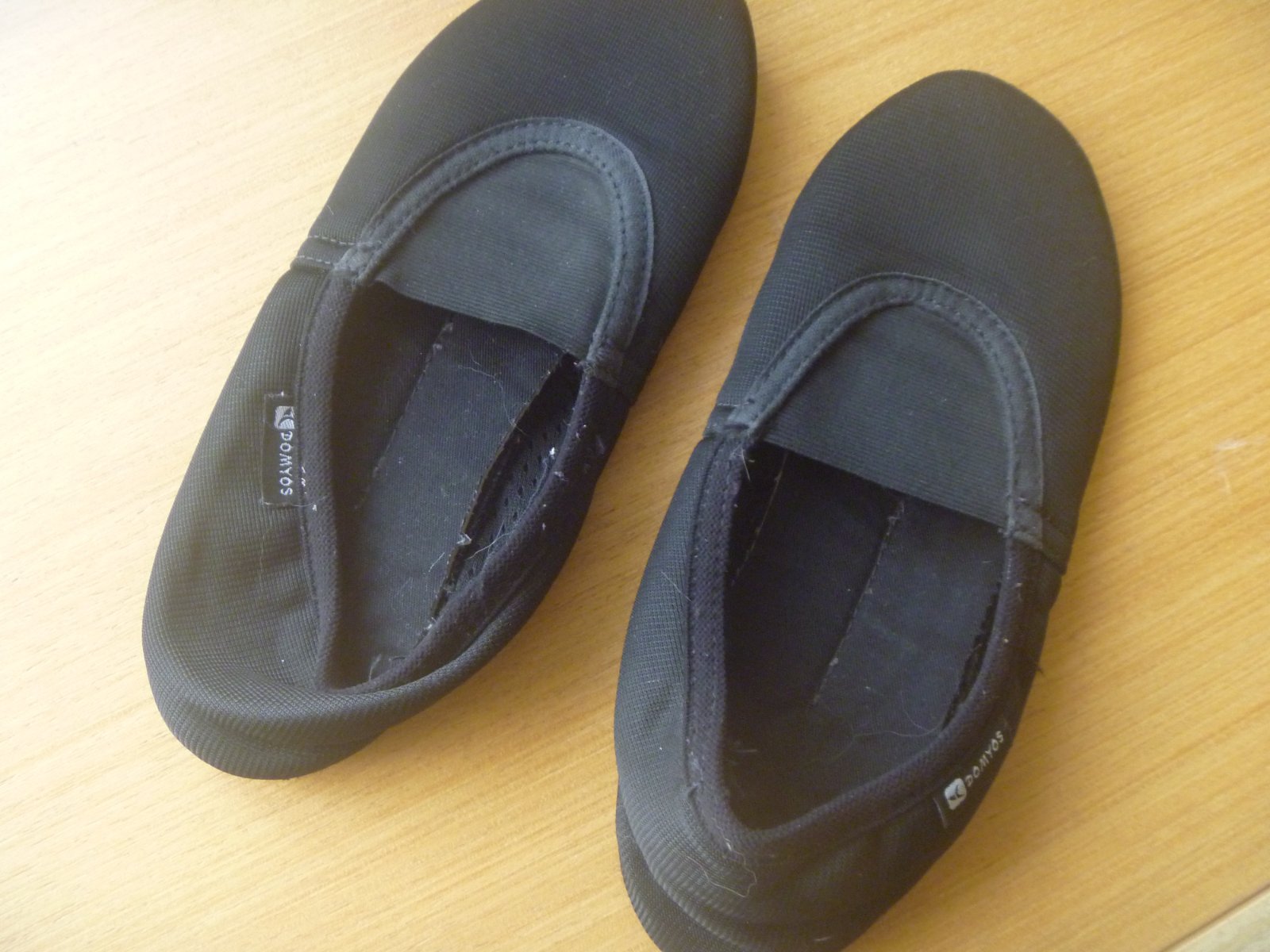 Prodám černé dětské cvičky na gymnastiku, značka Domyos (Decathlon), velikost 34 (21 cm stélka). Gymnastické cvičky se svrškem ze síťoviny se snadno nazouvají a díky pružné podešvi zajišťují dobrý kontakt s povrchem a nářadím. Velmi dobrý stav.