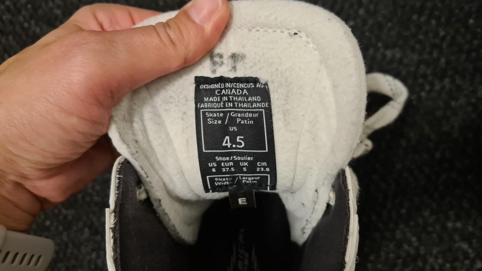 Nastavitelná velikost 33-36,používané.Letos jen nové nabroušené a zjištěno že jsou malé.