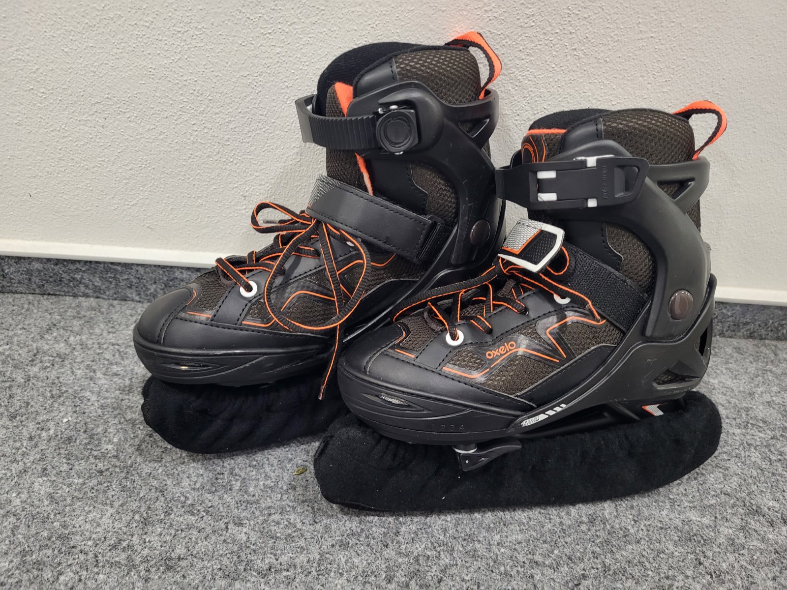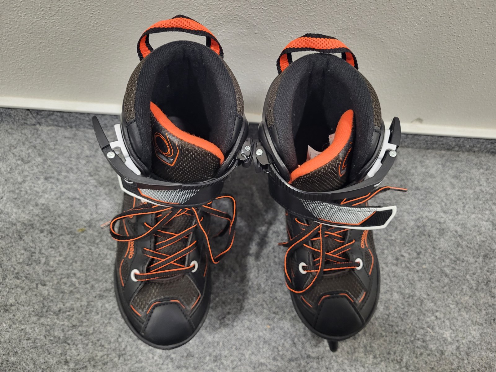 Prodám rostoucí dětské brusle CHLAPECKÉ LEDNÍ BRUSLE FIT 100 ČERNO-ORANŽOVÉ vel. 32/35 Decatlon: https://www.decathlon.cz/p/chlapecke-ledni-brusle-fit-100-cerno-oranzove/_/R-p-304675?mc=8522410&c=%C4%8CERN%C3%81_B%C3%8DL%C3%81_ORAN%C5%BDOV%C3%81&msclkid=fc44e6267673174172668f0f0c1e7a62. Ve velmi pěkném stavu, použity tak 5krát na půl hodiny. Navíc přidám chrániče na ostří bruslí.