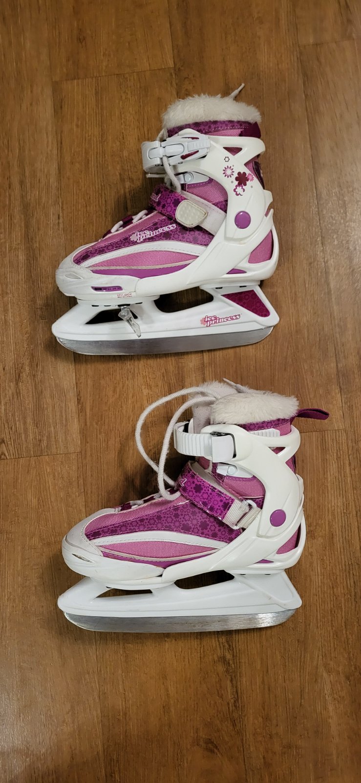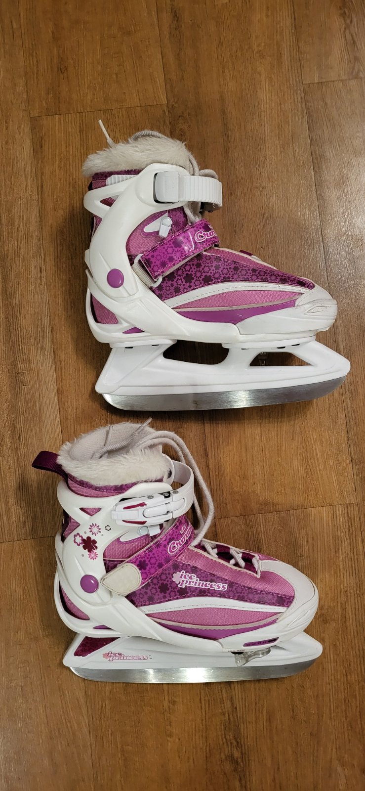 Nastavitelné zimní brusle, uvnitř teplé vel. 32 - 35. Zavazování na tkaničku, suchý zip + přesku.