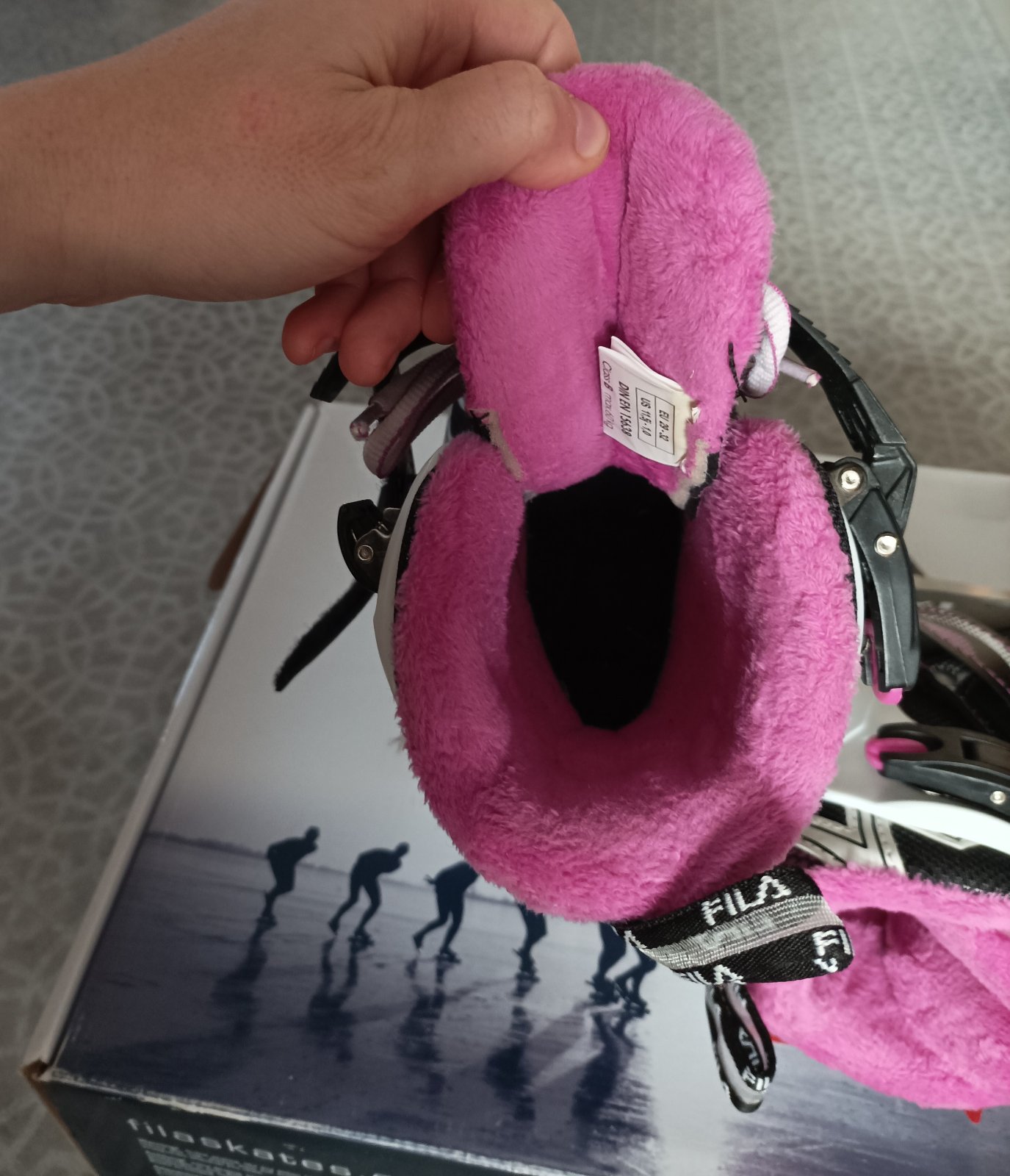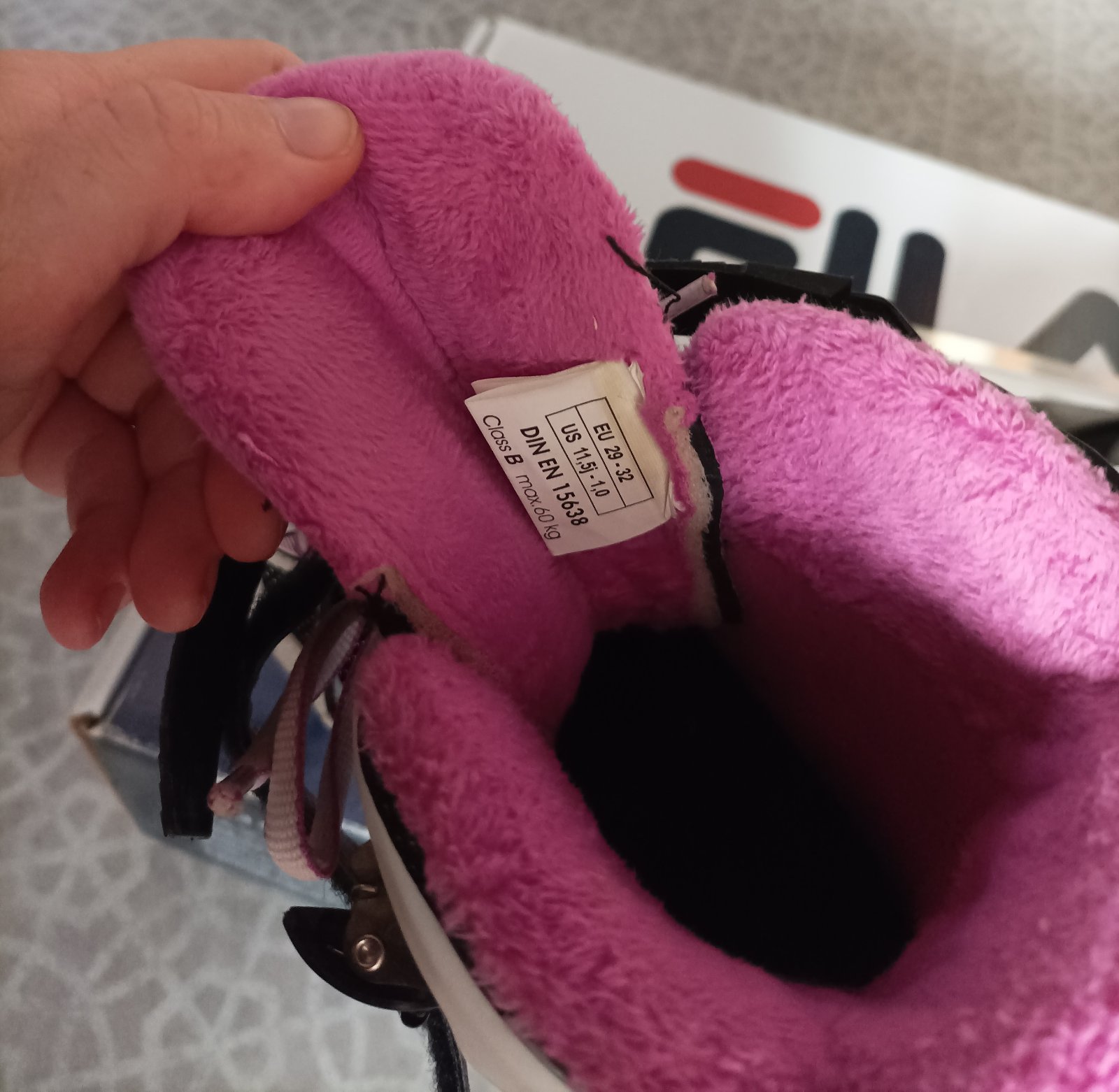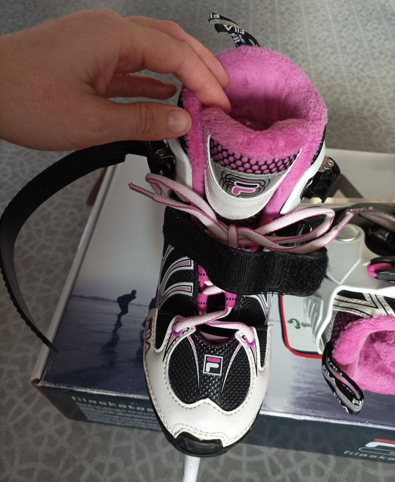 Brusle vel. 29, VD 18,5 cm. Jen jednou bruslené, zvenku jako nové, nejsou vůbec okopané. Bohužel nám zkorodovaly vnitřní plíškové úchyty tkaniček (viz poslední foto).
