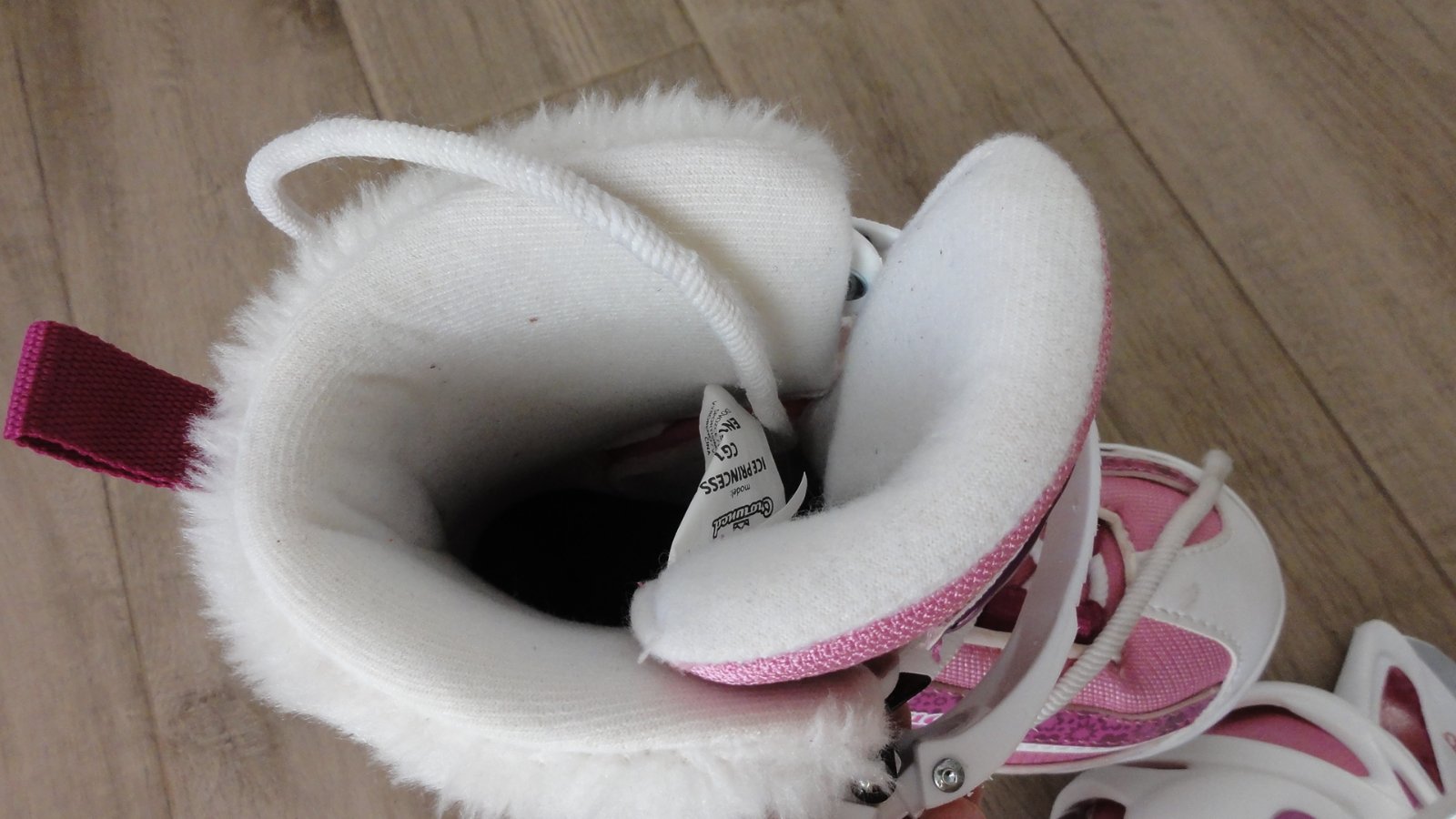 Dívčí lední brusle Crowned PRINCESS s nastavitelnou velikostí boty v rozsahu 4 velikostí. Velikost 32-35. Mají skeletovou konstrukci, která nohu podrží a příjemnou polstrovanou botu. Jako nové.