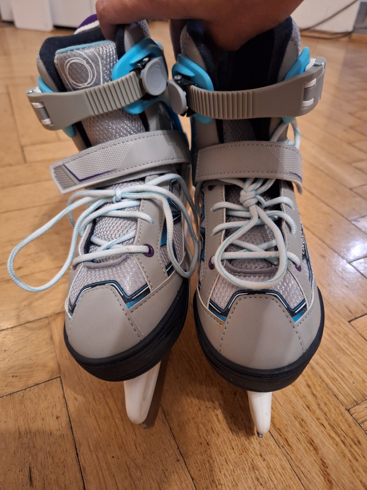 Dívčí lední brusle fit 100 šedo-tyrkysové.