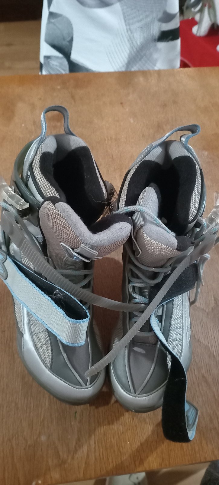 Rostoucí kolečkové + lední brusle, podvozek PP, slitina hliníku, nylon, kolečka PU ABEC7, kupované nové pro jedno dítě, bohužel se synovi při pádu podařilo vytrhnout/rozpárat celou přední část jedn...