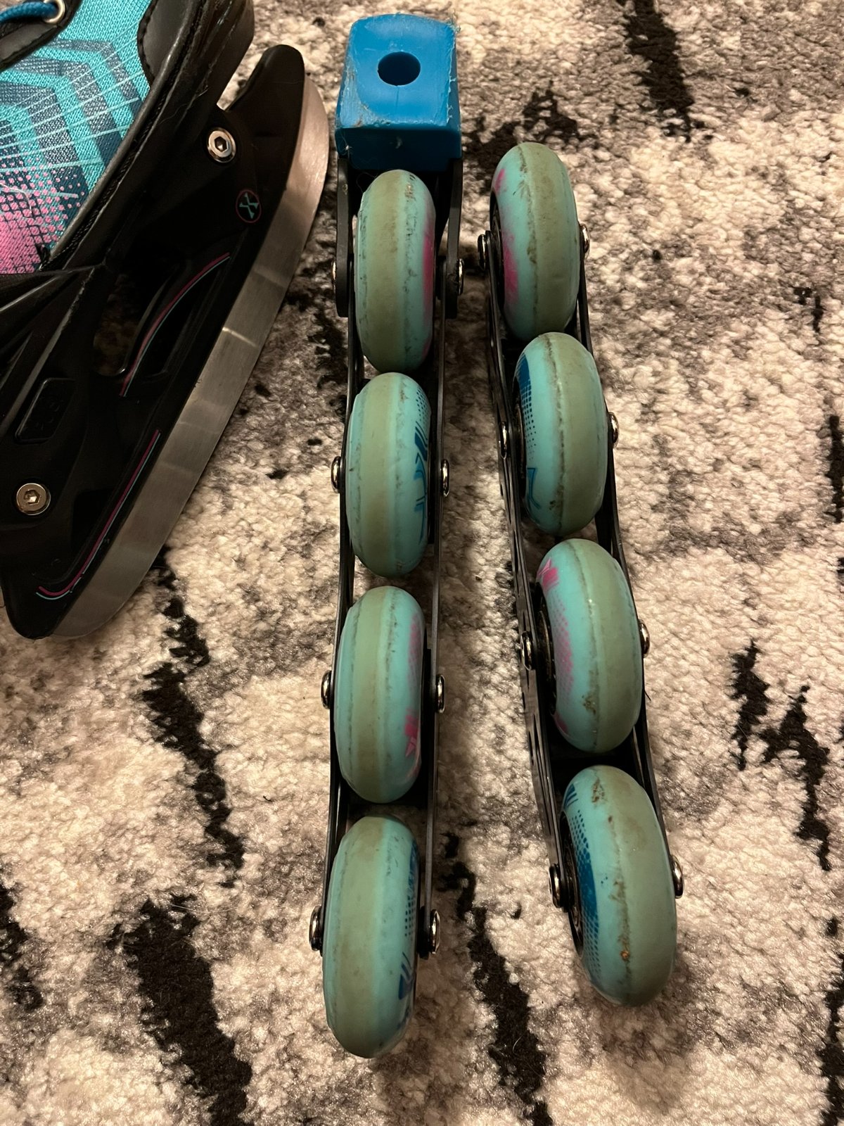 Brusle 2v1 - lední a kolečkové. Roztahovací - vel. 29-33. Po jednom dítěti. Běžné opotřebení. V originální krabici, vč. návodu. Osobní vyzvednutí v Sušici nebo Klatovech. Možno poslat (dopravné dle dopravce).