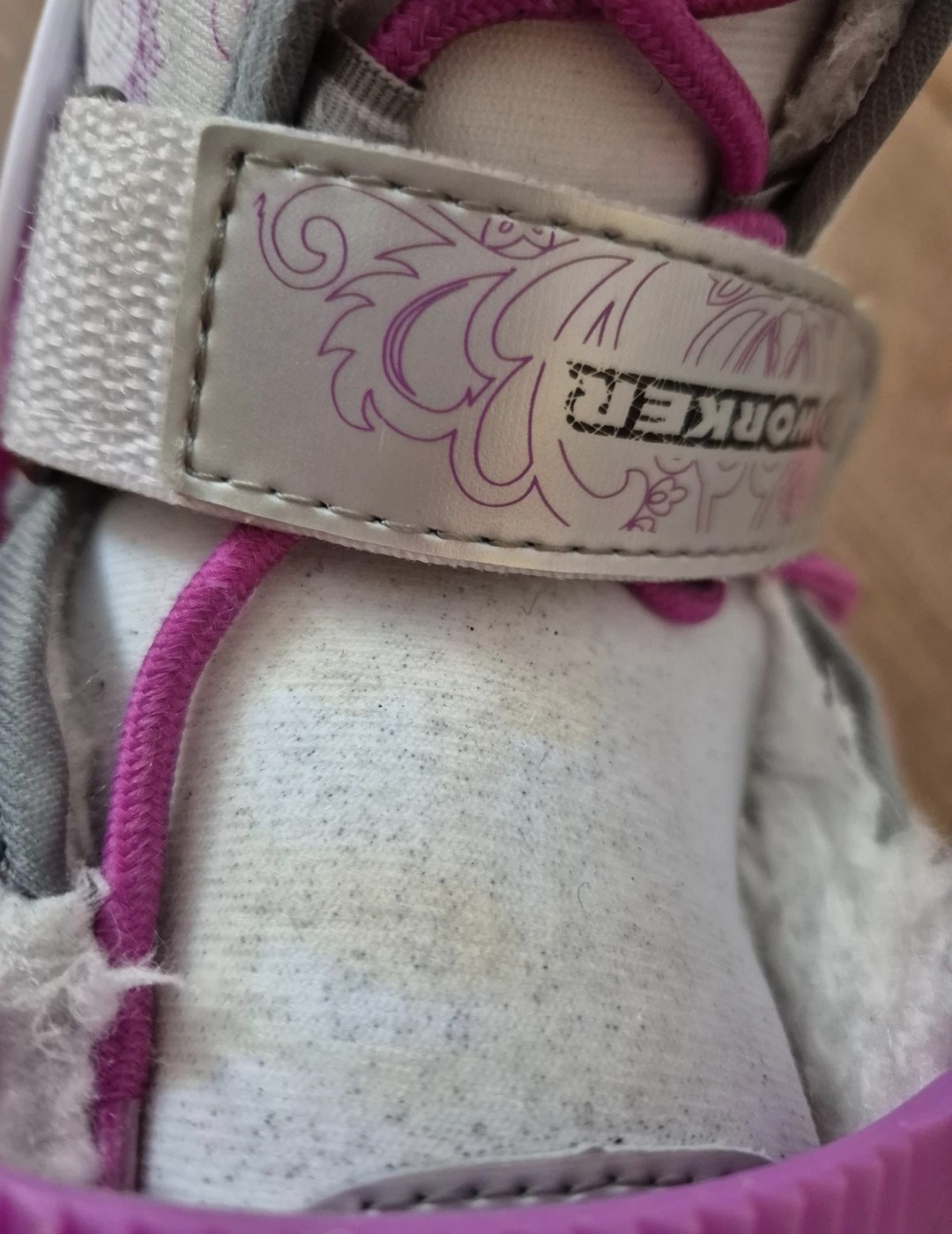 Vlivem působení mokrého sněhu je na bílé botičce vidět místy nepatrné zbarvení - vše nafoceno.