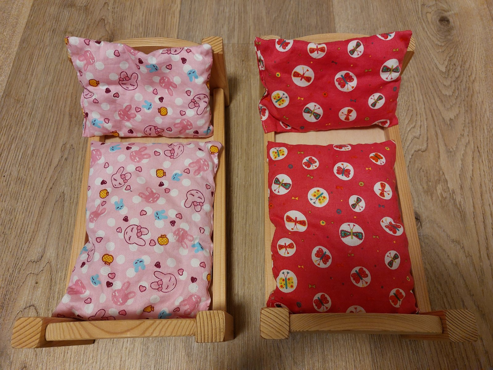 Dřevěné postýlky pro panenky. V pořádku. Cena za obě. Zdarma přidám miminka viz foto.