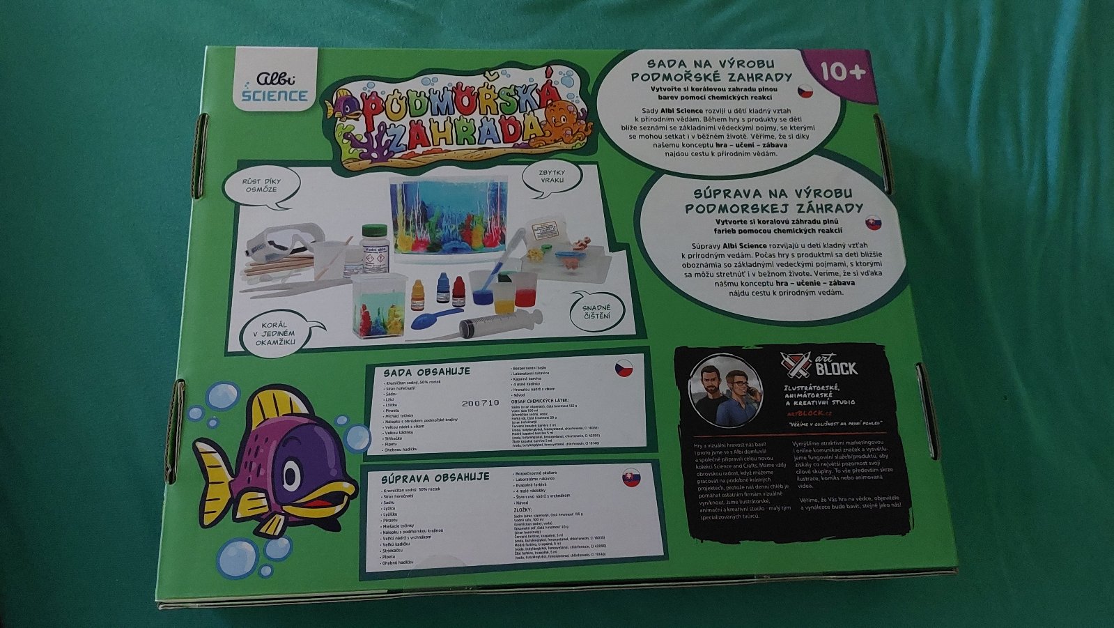Vytvořte si podmořskou zahradu plnou pestrých barev. Pozorujte, jak rostou korálové útesy. Pomocí chemických reakcí bude vaše zahrada hrát všemi možnými barvami. Součástí sady jsou nástroje, kterými můžete míchat chemické látky. Své korály můžete pozorovat ve speciálně zakřiveném akváriu.