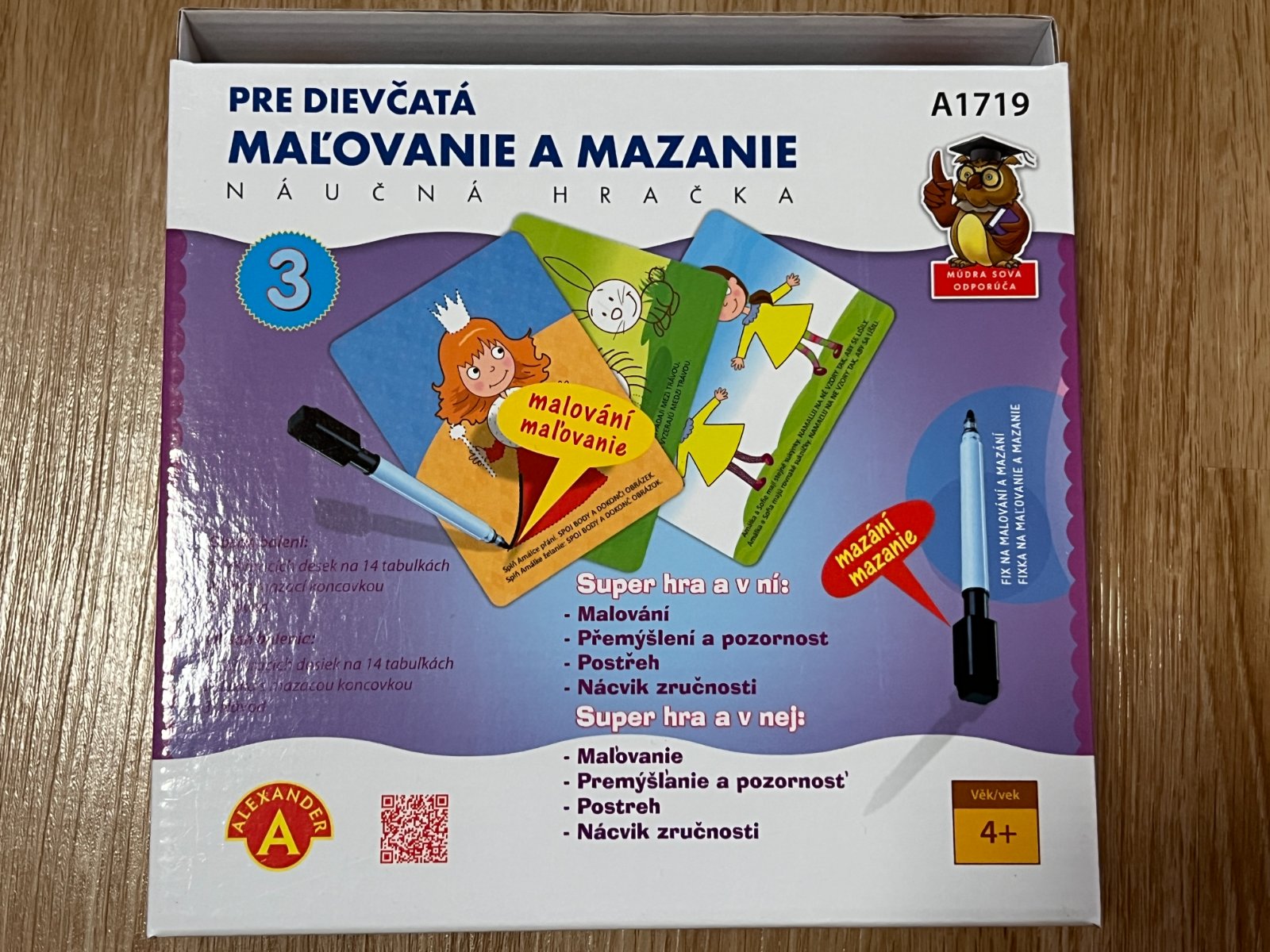 Nabízím na prodej dětskou hru - malování a mazání pro dívky. Originální fix je vypsaný. Na kartičky se dá psát jakýmkoliv fixem na tabule.