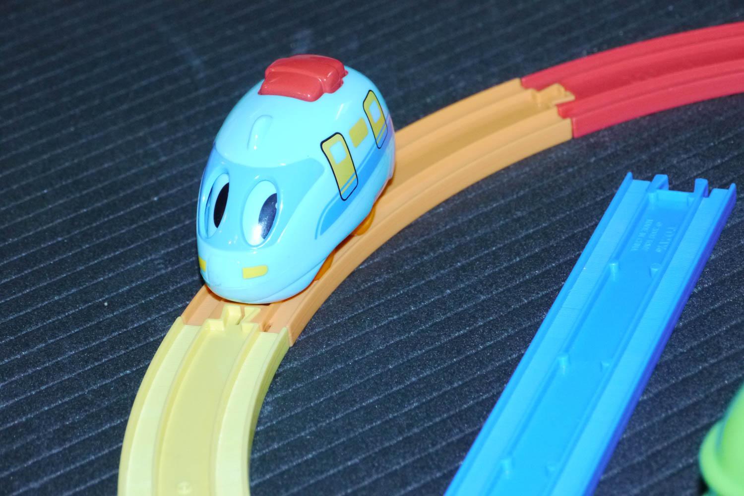 Male dite zvladne drahu sestavit i samo. Dily pasuji s obou stran do sebe.