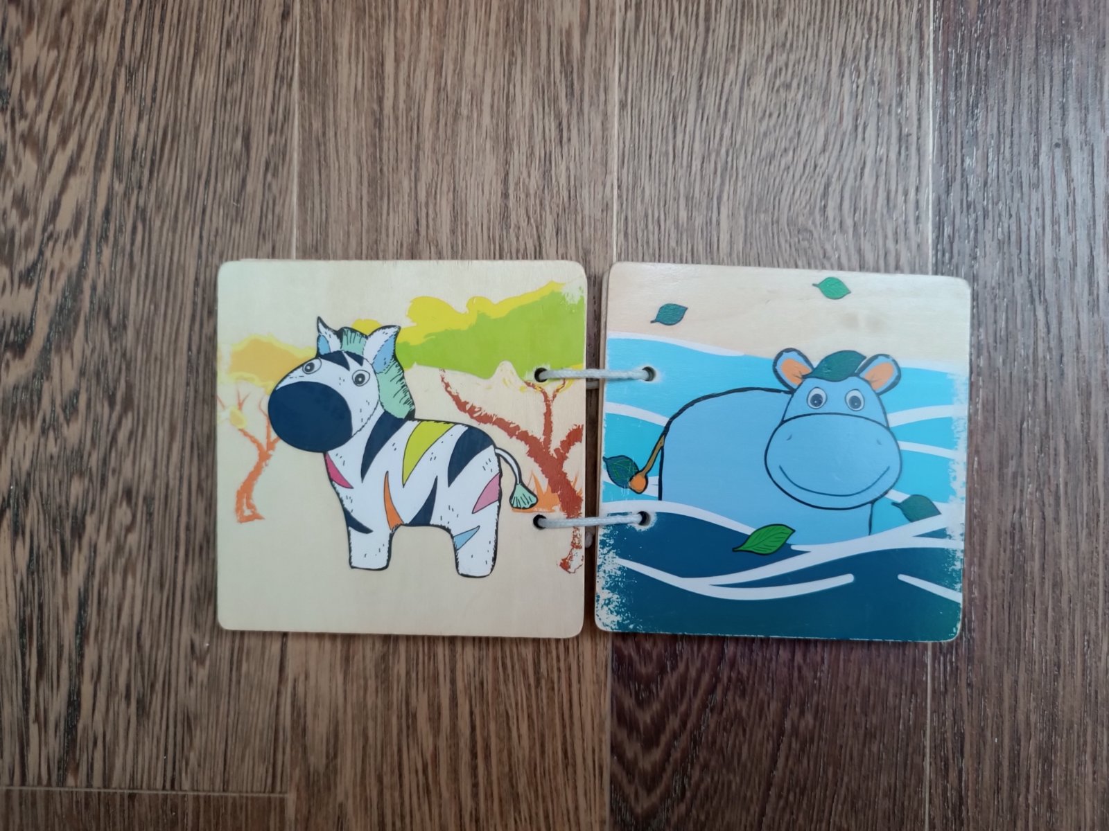 - 1x dřevěná knížka, kupovaná v Lidlu, oblíbená, s motivem zvířátek, cena 20 Kč